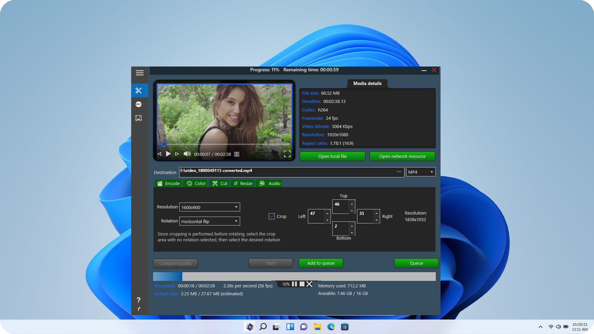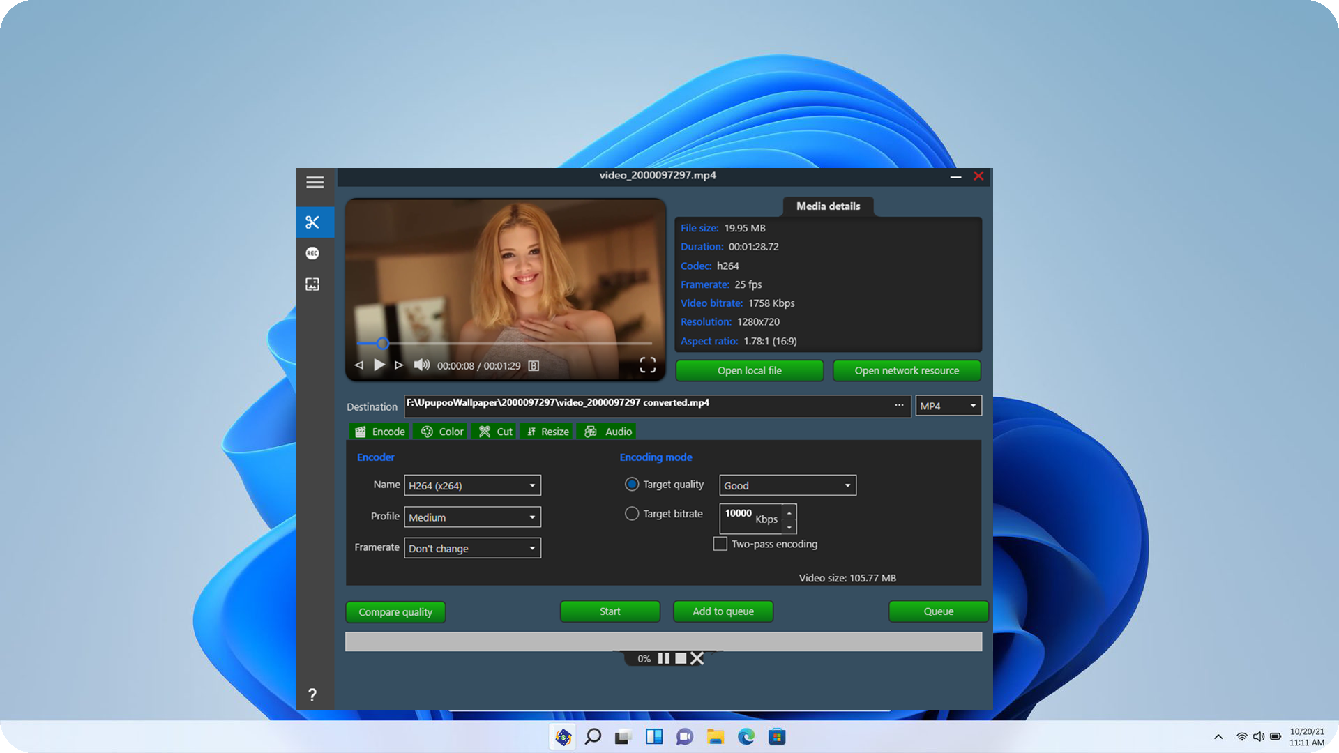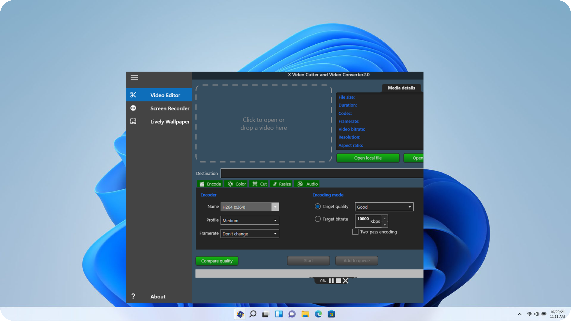 -Encode video files in H264 and H265 and export them in mp4 or mkv format