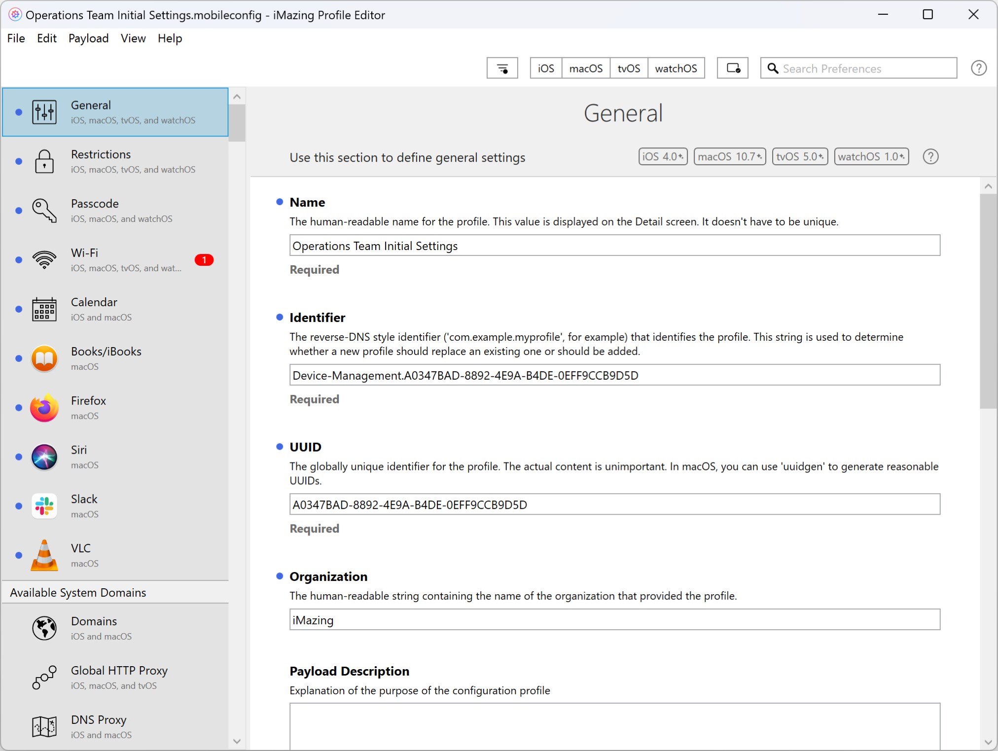 * In accordance with advice from Apple, iMazing Profile Editor will no longer rotate profile or payload UUIDs when saving profile changes