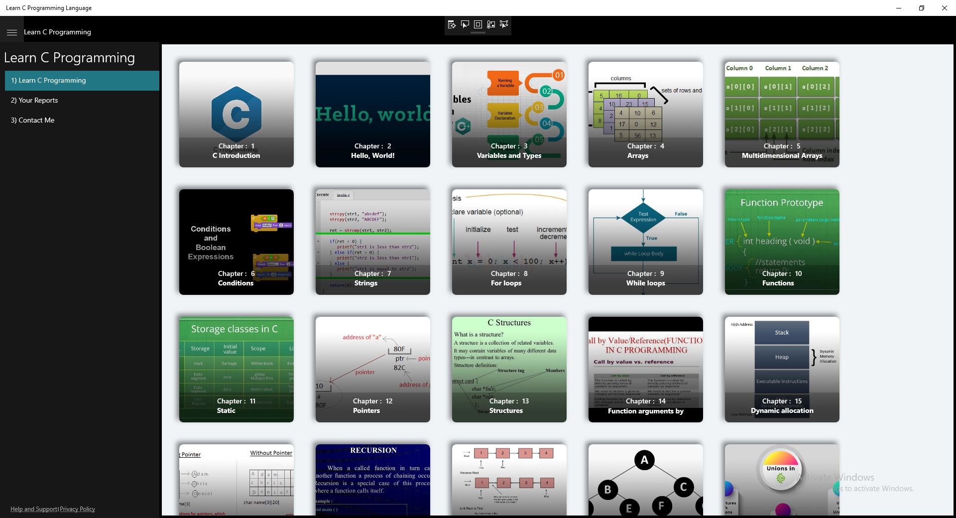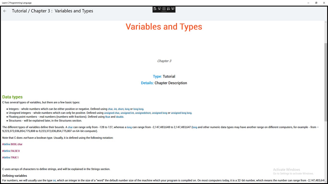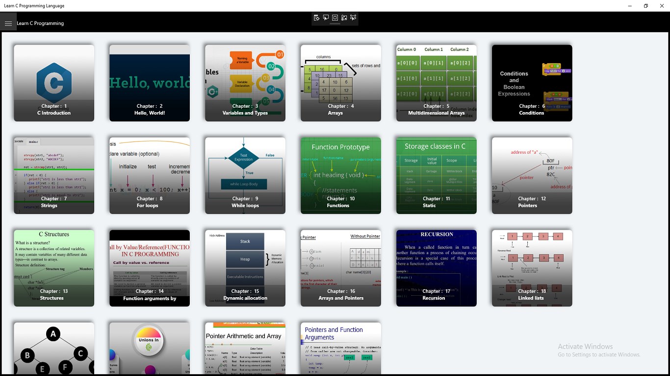 This App is interactive C tutorial for people who want to learn C,