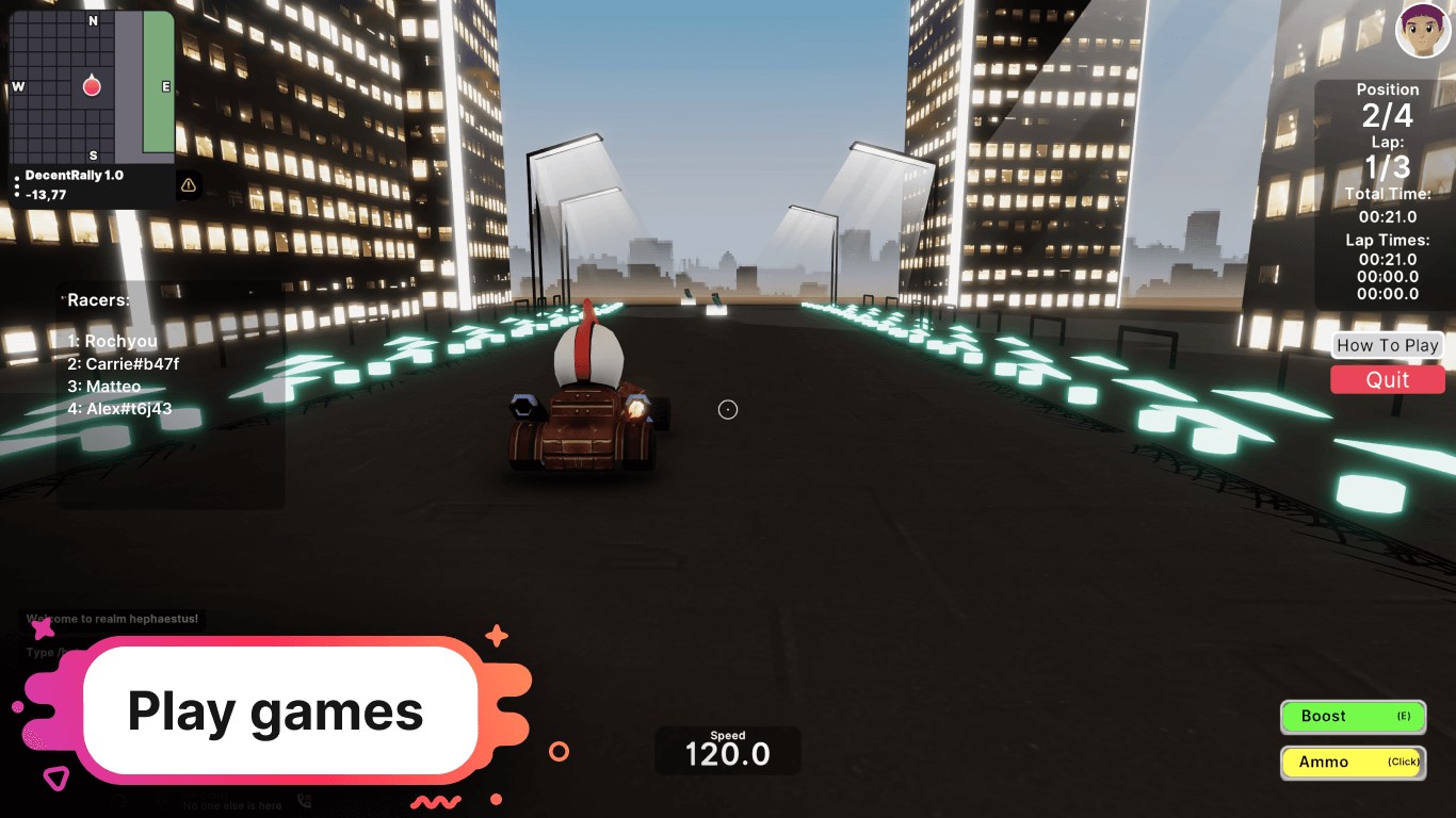 Explore a huge world full of user-created contentMeet with people virtually and make new friendsAttend live events such as parties, concerts, art exhibits, and morePlay games and enjoy other entertainment experiencesCreate and monetize your content