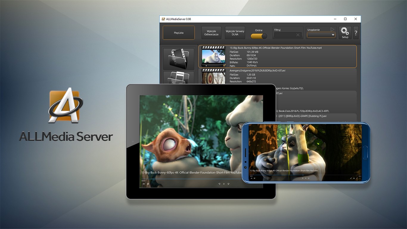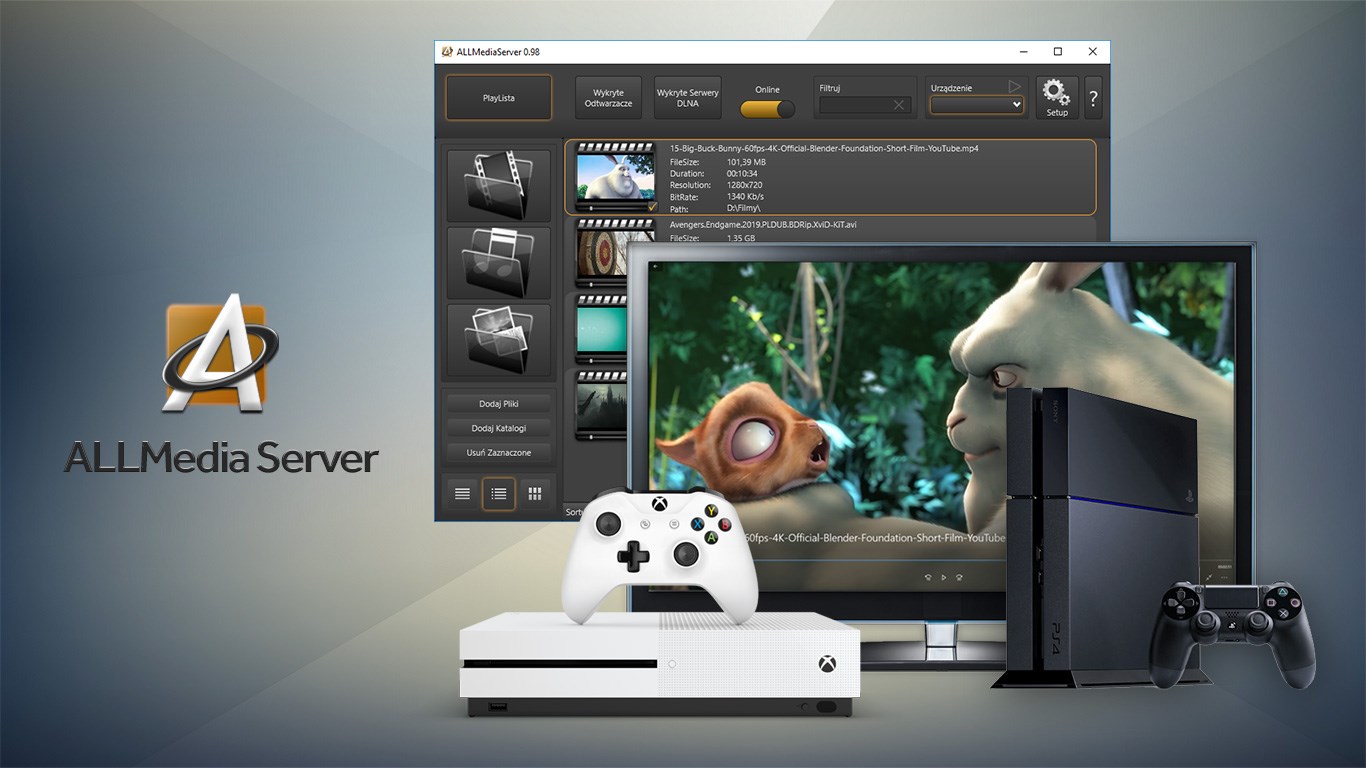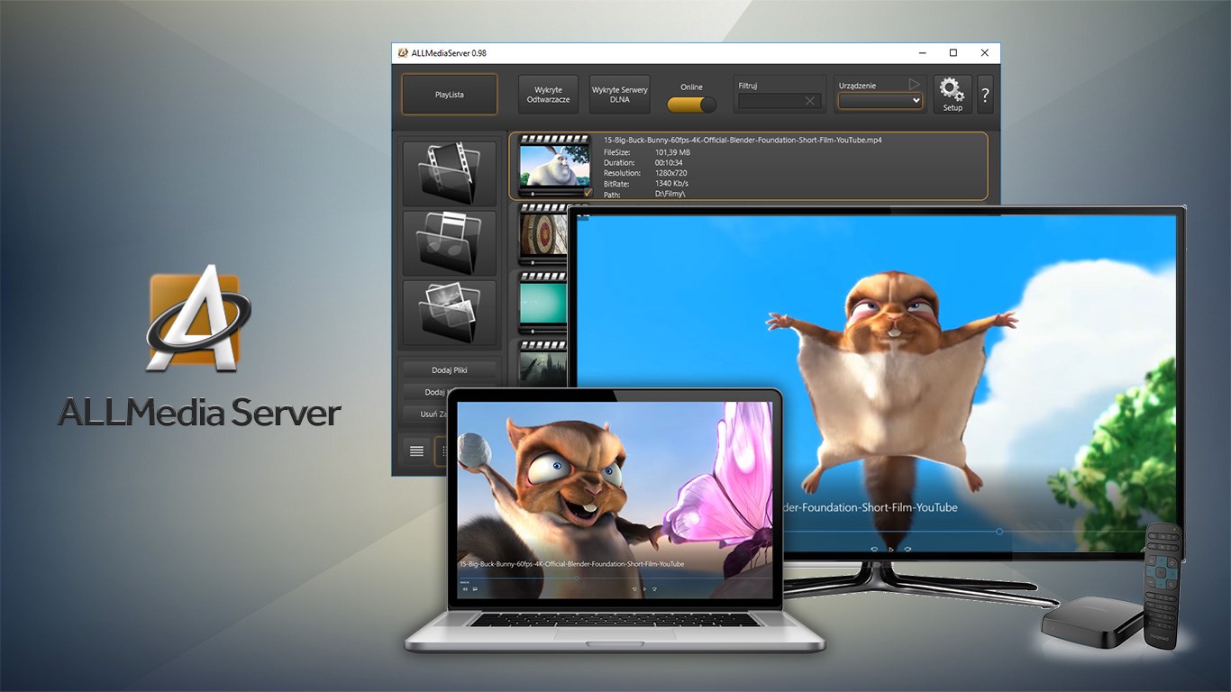 ALLMediaServer is very easy to use Media Server that enables you to watch or casting your videos, listen to music or view photos on all of your devices (TV, smartphone, Chromecast, XBOX, MIBOX, Smart TV)
