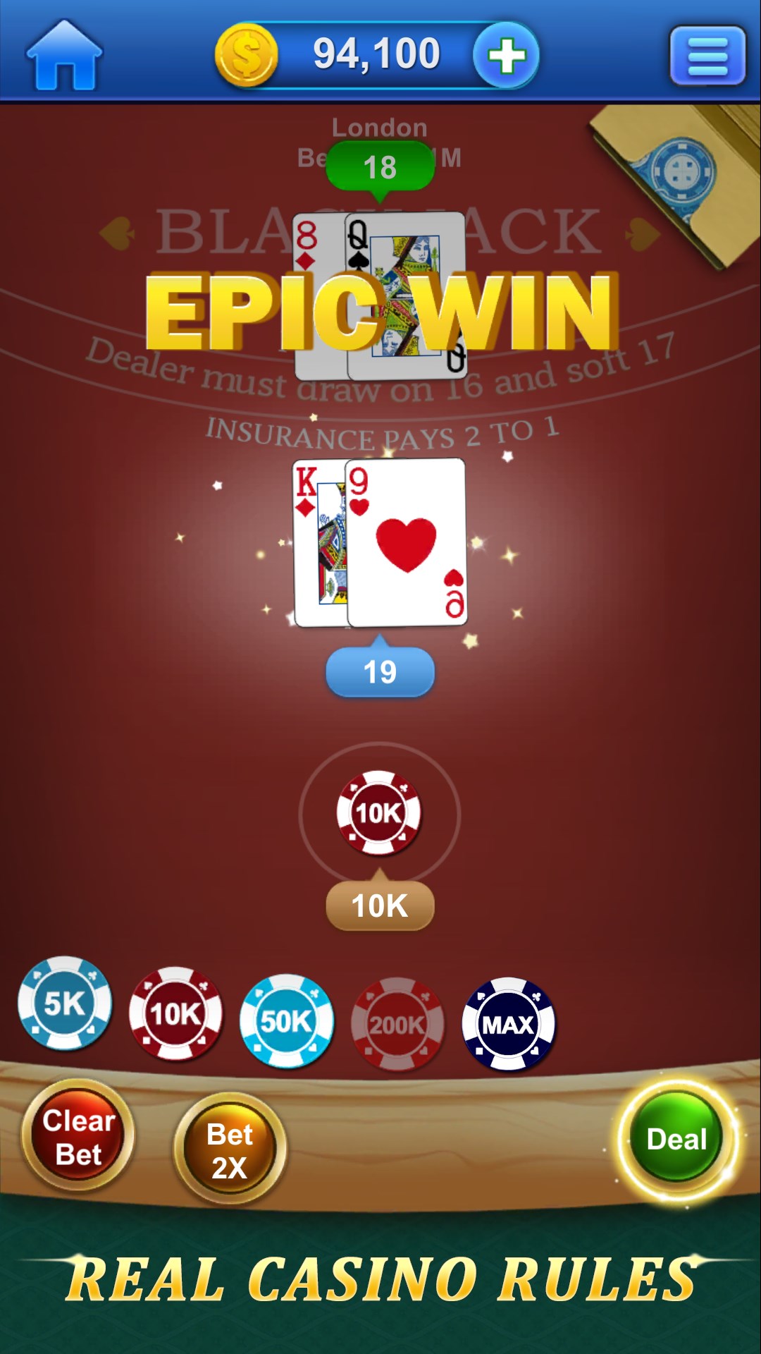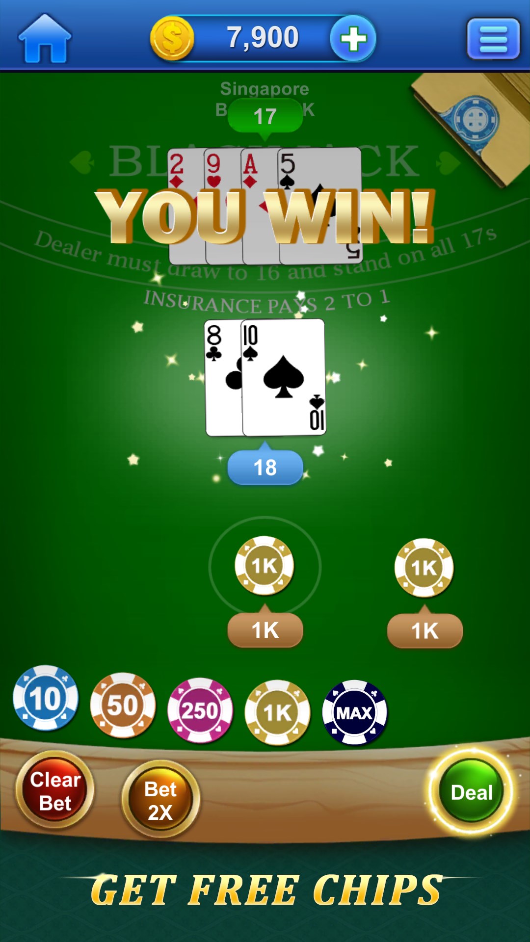 Classic Rules to playFair Play with Dealer and PlayerPlay everyday with lots of FREE chips!Insurance to reduce losses