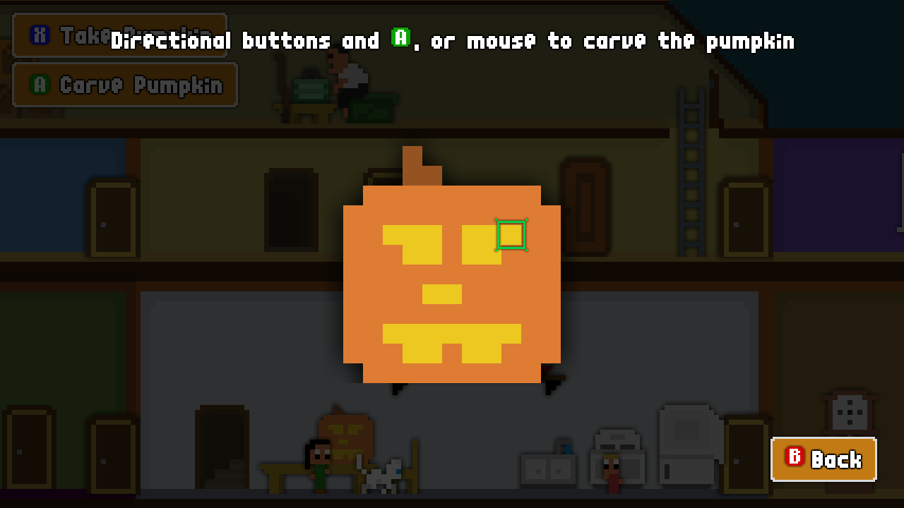 Explore a lighthearted, interactive world and solve puzzles. Search your house and the neighborhood for what you need to make costumes. Carve your own pumpkin.