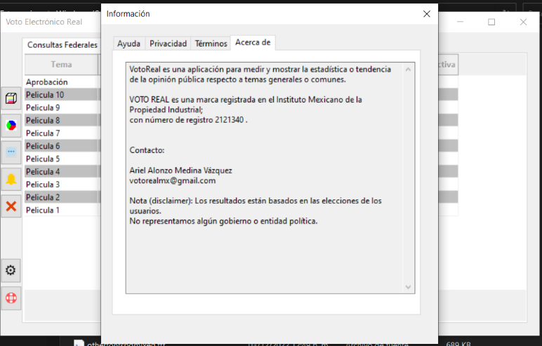 VotoReal ® es una aplicación para medir y mostrar las preferencias de la gente en temas políticos, económicos, sociales, etc. El ámbito puede ser Federal, Estatal o Municipal.
