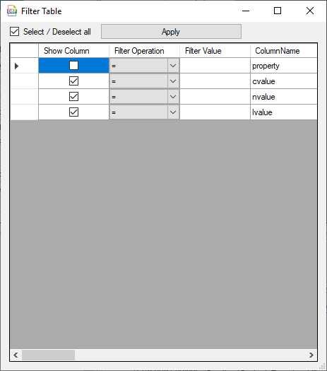 - Filter Operations added (=, !=, >, =,