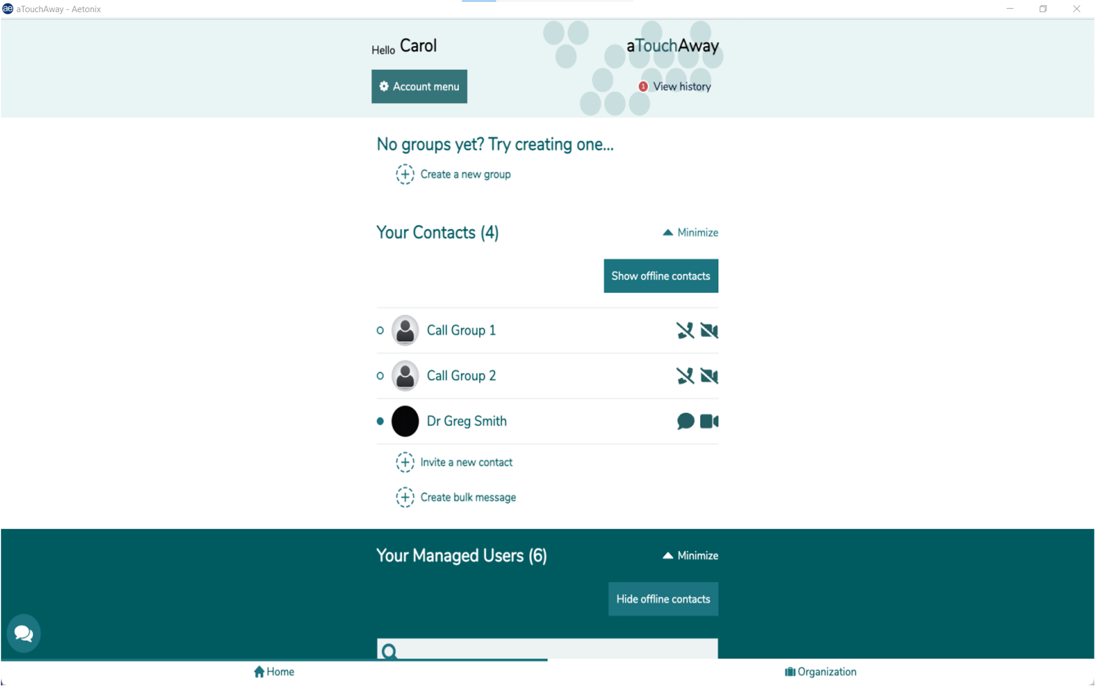 With the aTouchAway; the circle of care members and home-care clients can easily communicate with one another across our secure, mobile communications platform. Home-care clients easily and efficiently communicate to their care members and professionals through secure video conferencing and sharing of their unique care plan information.