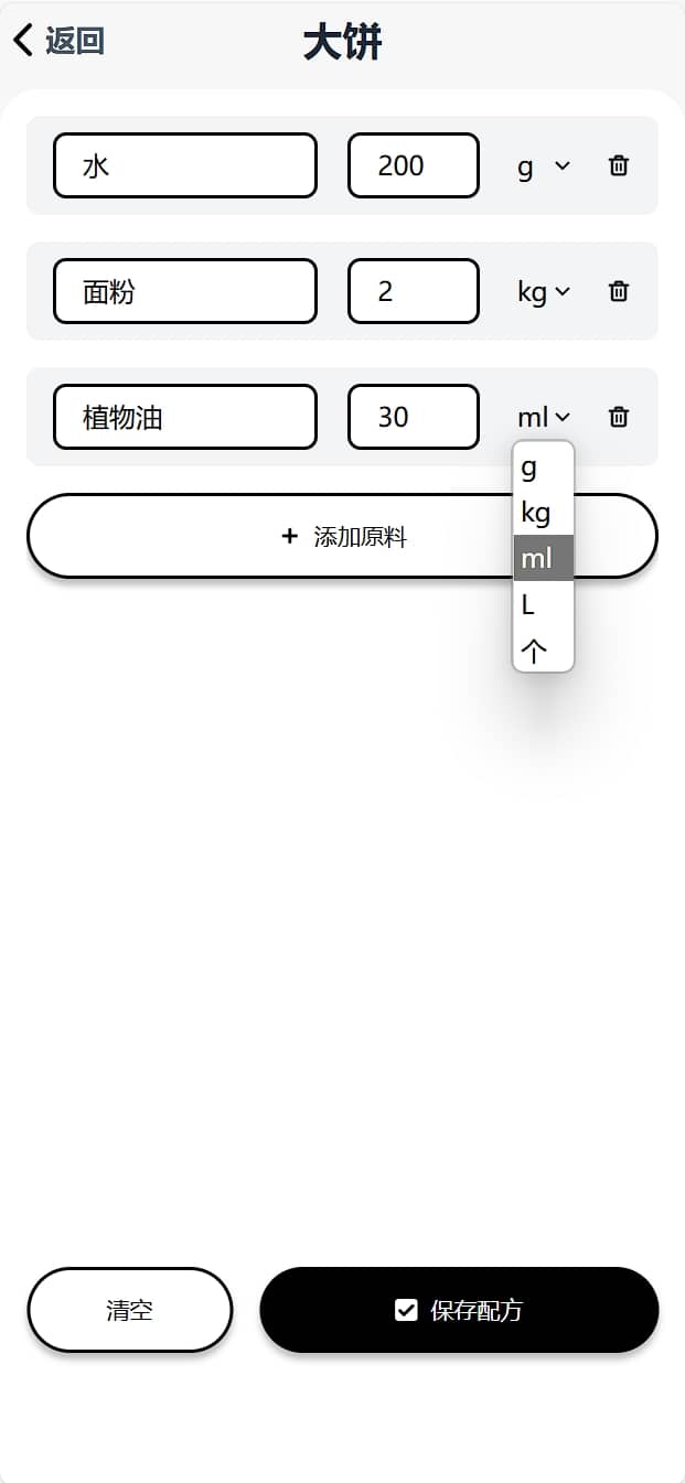 智能比例调整:输入您想要的份量,配方工坊自动为您计算所需的精确食材量。