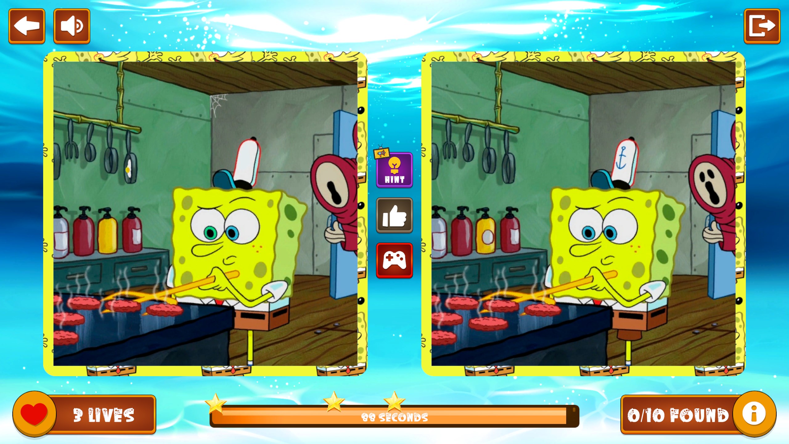 Dive into the underwater fun with Sponge Find The Differences, a thrilling puzzle game inspired by the lovable world of SpongeBob! Challenge your observation skills as you explore 30 exciting levels filled with colorful and quirky scenes. Can you spot all the differences between two seemingly identical images before time runs out?