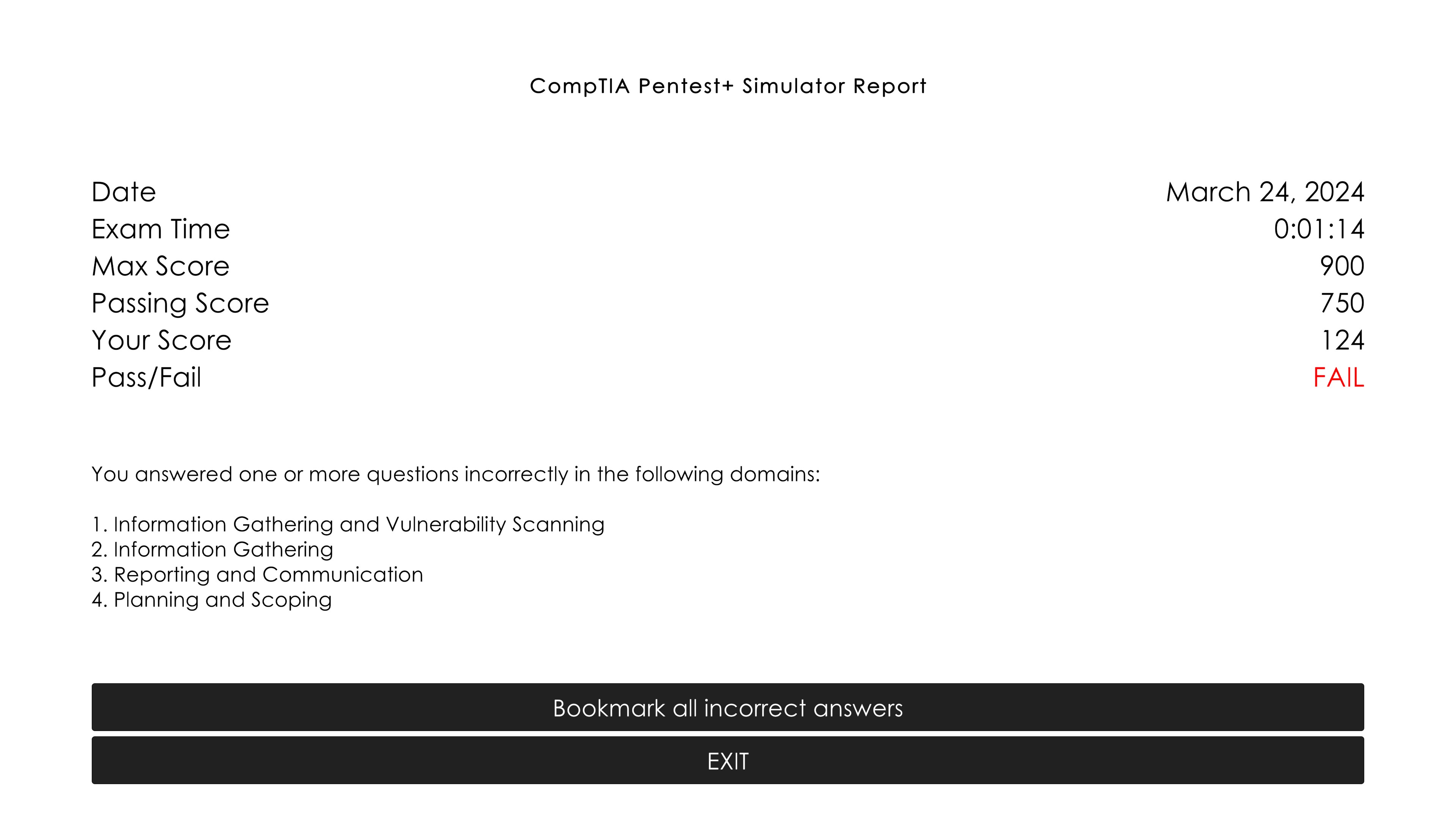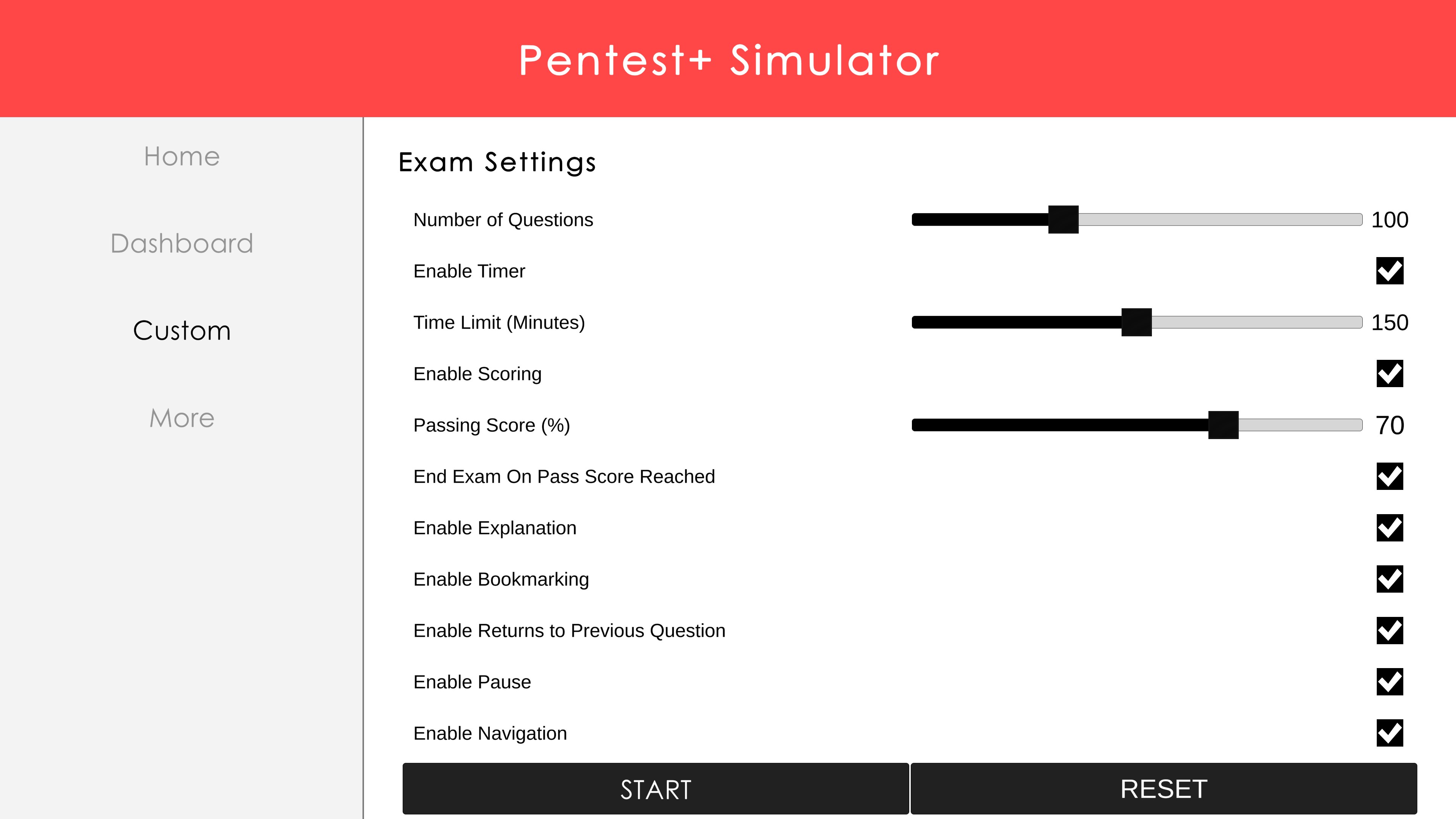 The simulator mode is created to replicate the actual CompTIA Pentest+ exam format to help you go through a mock exam prior to your actual exam.