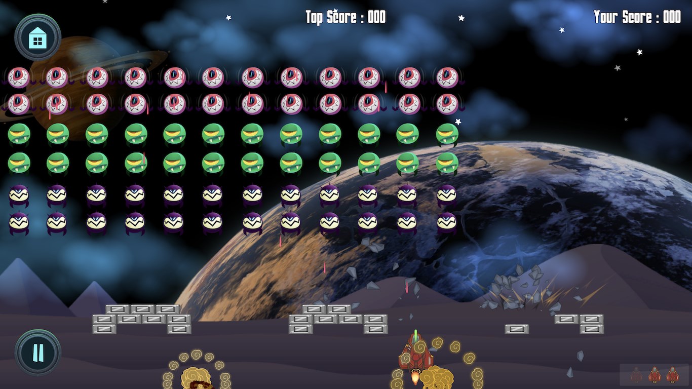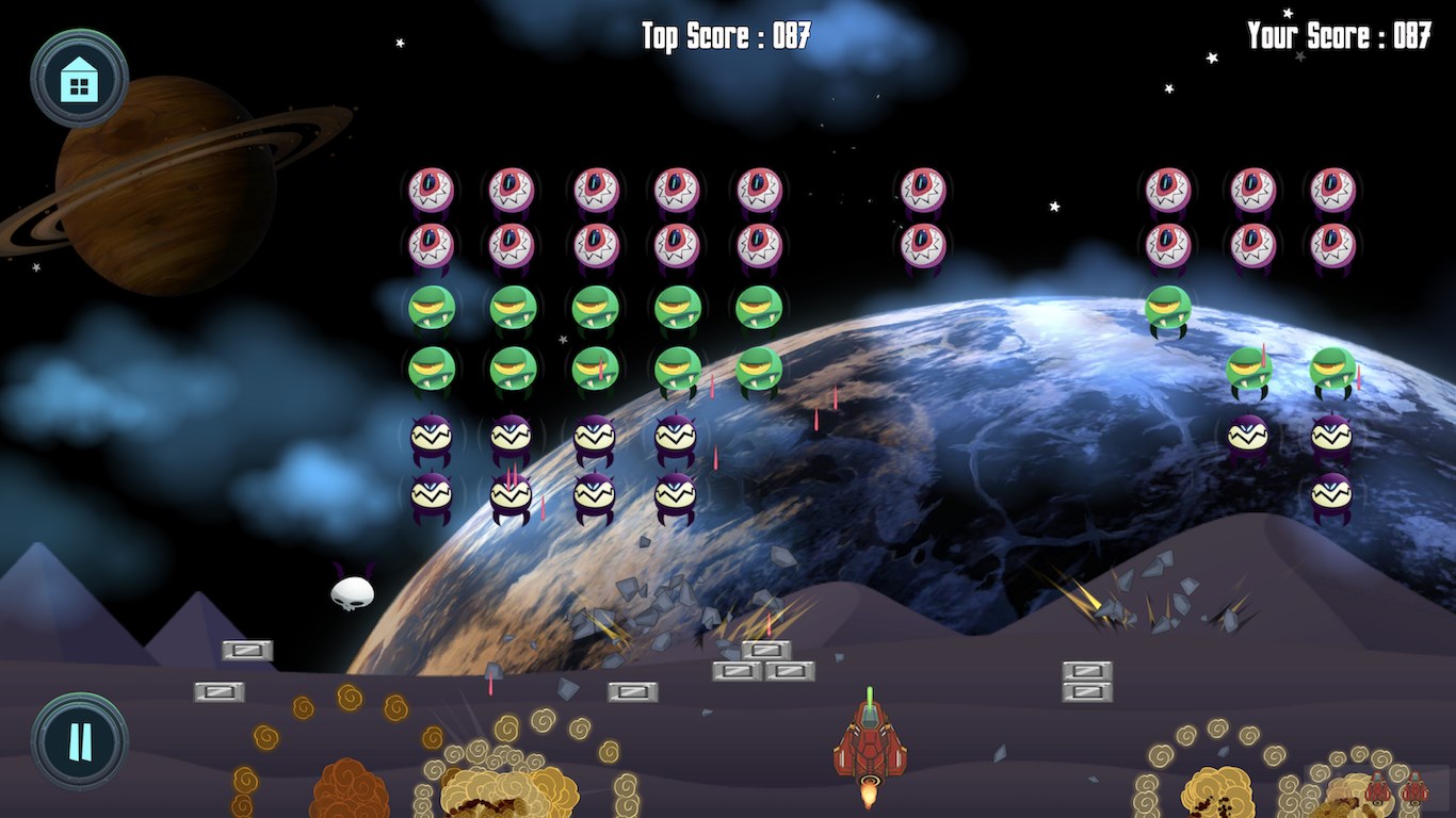 Aliens Bugs try to take over earth, it is up to you to save earth from these aliens by shooting all their spaceships.
