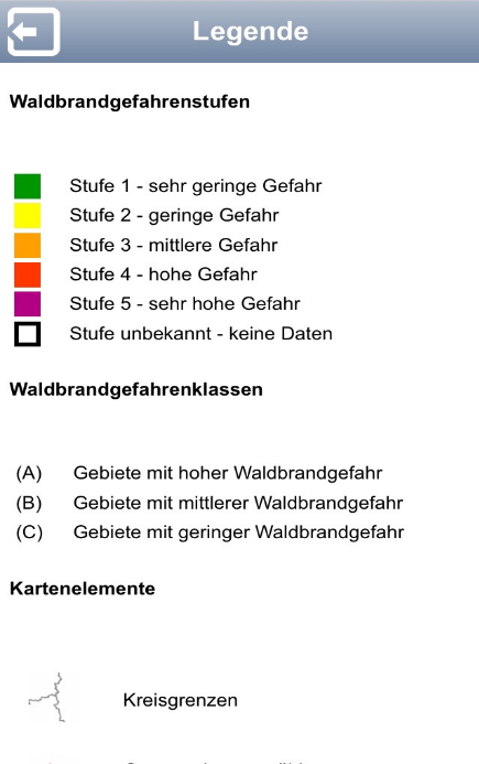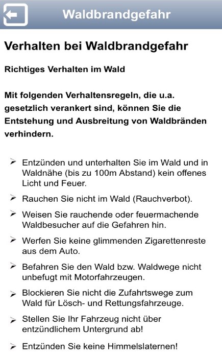 - die aktuelle amtliche Waldbrandgefahrenstufe des DWD am