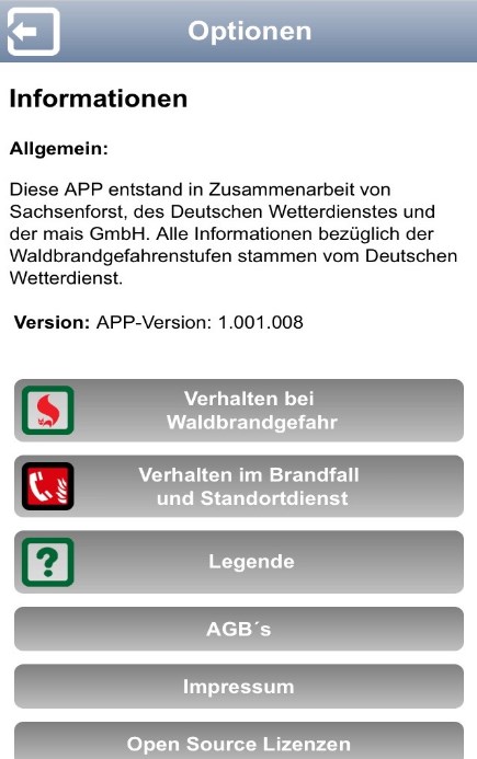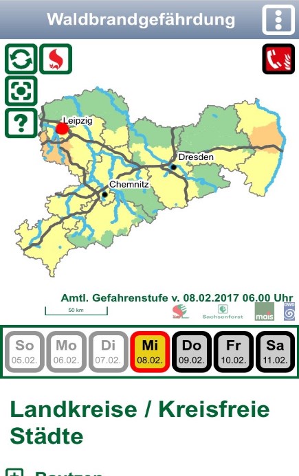 Die APP wird durch den Staatsbetrieb Sachsenforst bereitgestellt und in Zusammenarbeit mit dem Deutschen Wetterdienst und der Mitteldeutschen Agentur für Informationsservice GmbH (mais) realisiert.