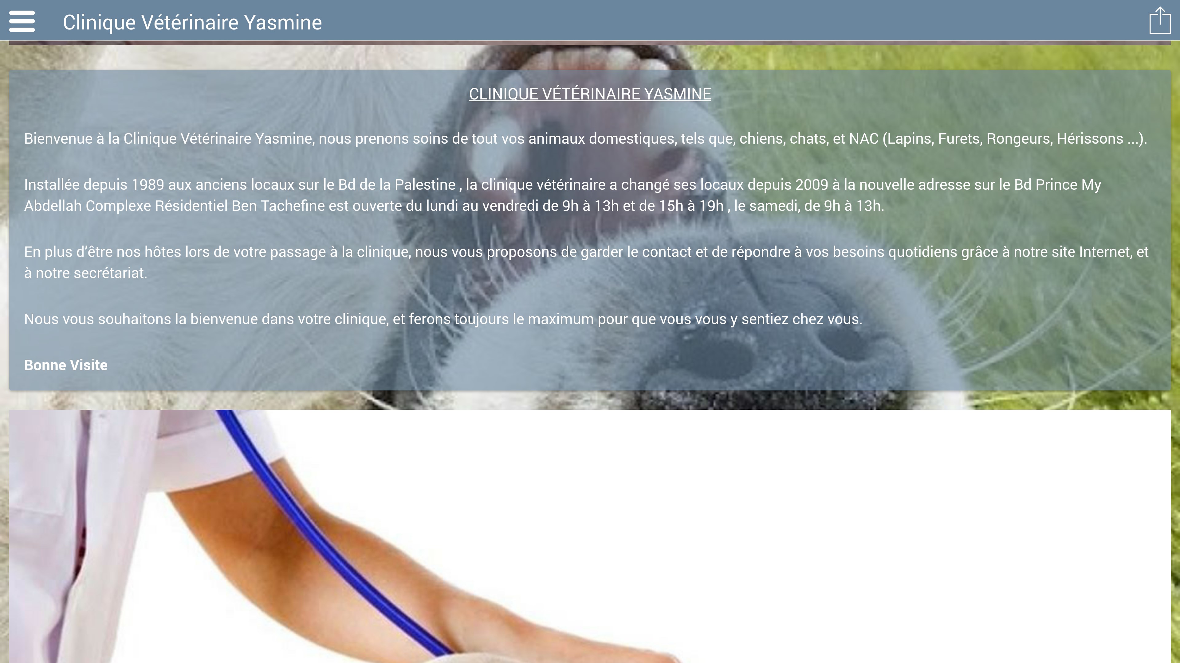 • Open your browser and go to the Clinique Vétérinaire Yasmine page