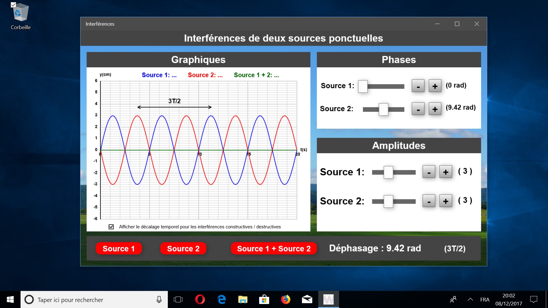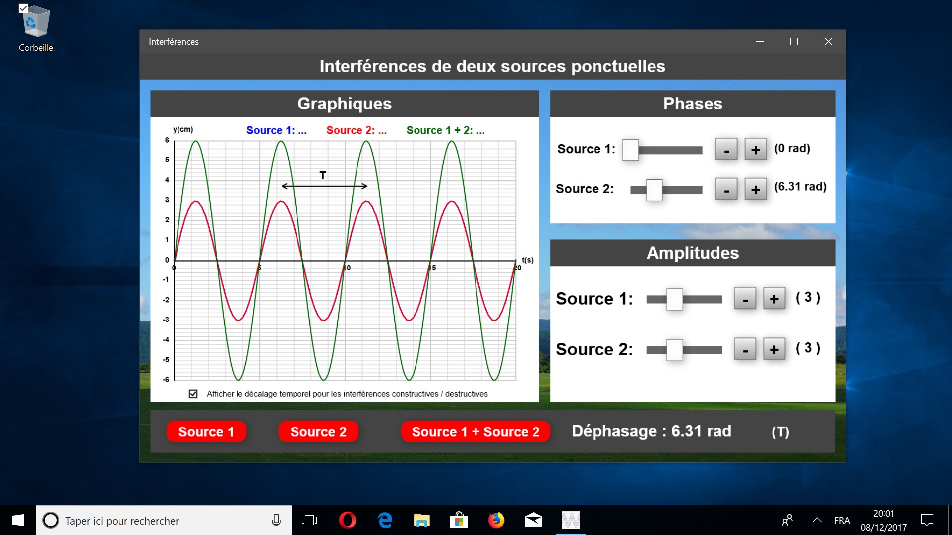 Il est possible de modifier la phase de la source 1 et 2 ou encore de modifier l’amplitude de la source 1 et 2.
