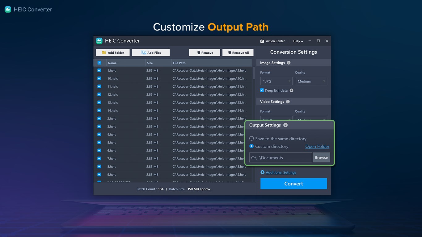 • Add a folder or individual HEIC images