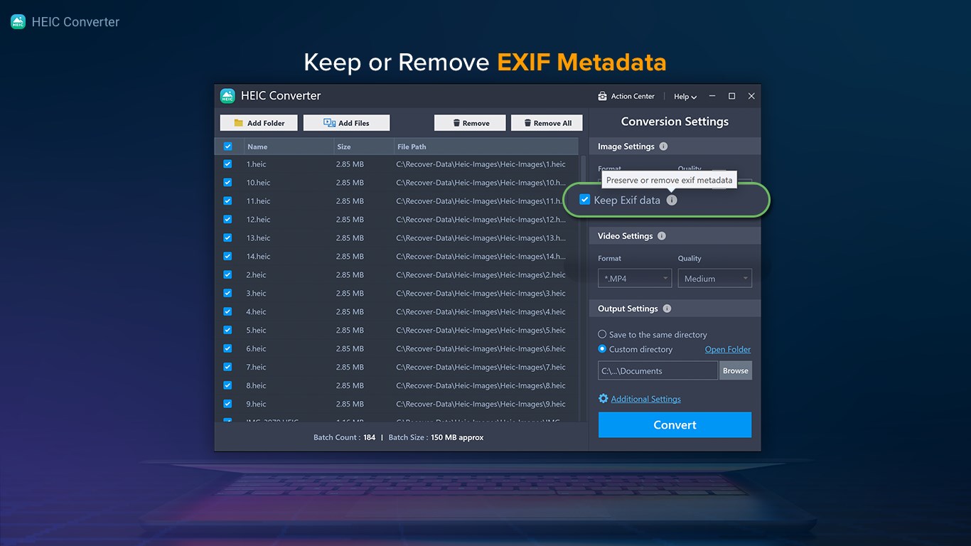 HEIC Converter is a specialized tool designed to handle HEIC (High Efficiency Image Format) and HEVC (High-Efficiency Video Coding) files & transform them into JPG, PNG, or MP4 formats on Windows. This is especially useful for viewing HEIC images or HEVC videos outside the Apple Environment. The Windows application ensures that image and video quality remain intact, and it retains the essential EXIF data associated with the files. The software offers a straightforward and intuitive dashboard that can convert unlimited HEIC and HEVC files without compromising the original quality.