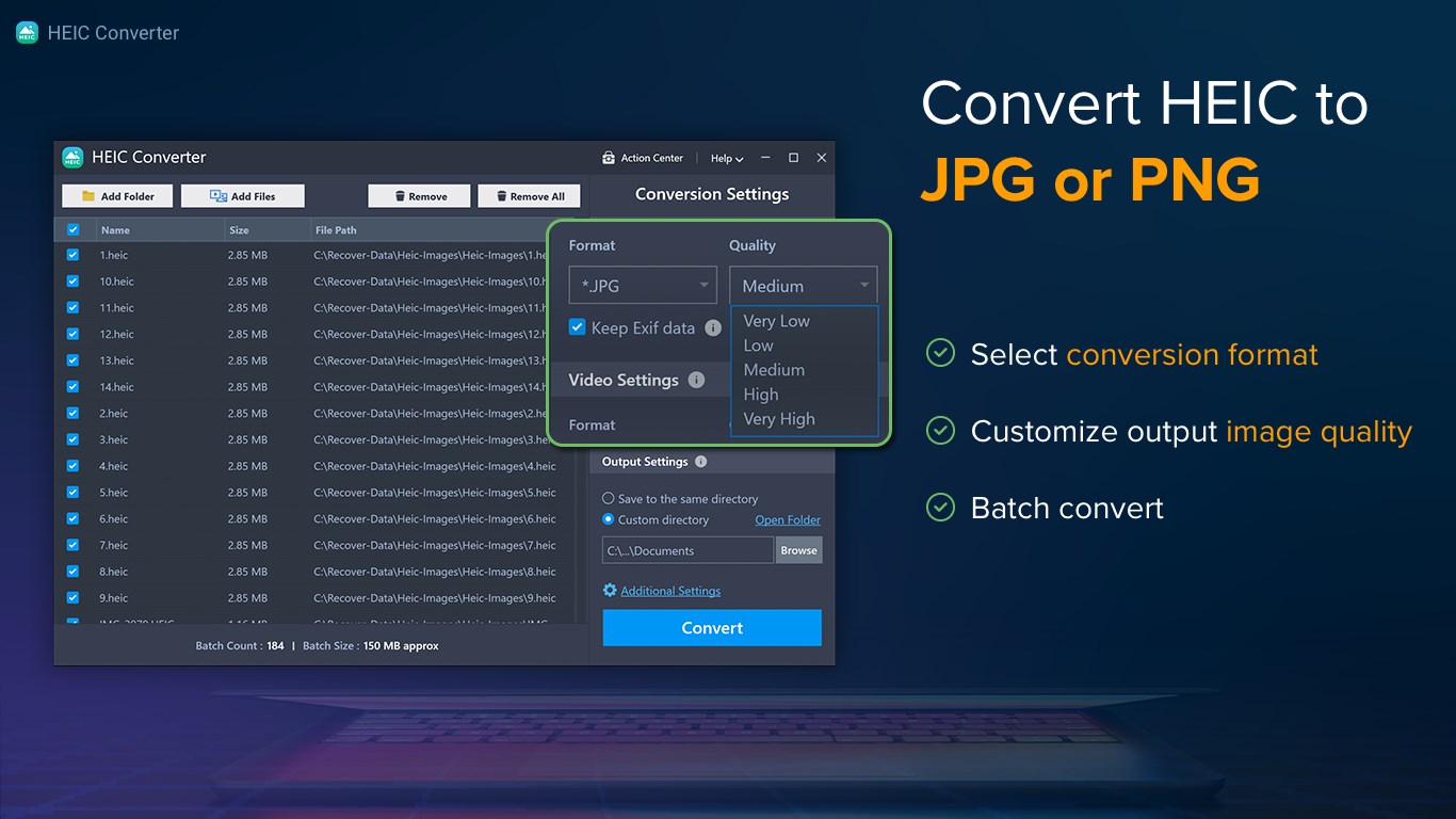 HEIC Converter: HEIC to JPG, HEIC to PNG, HEVC to MP4 for Windows