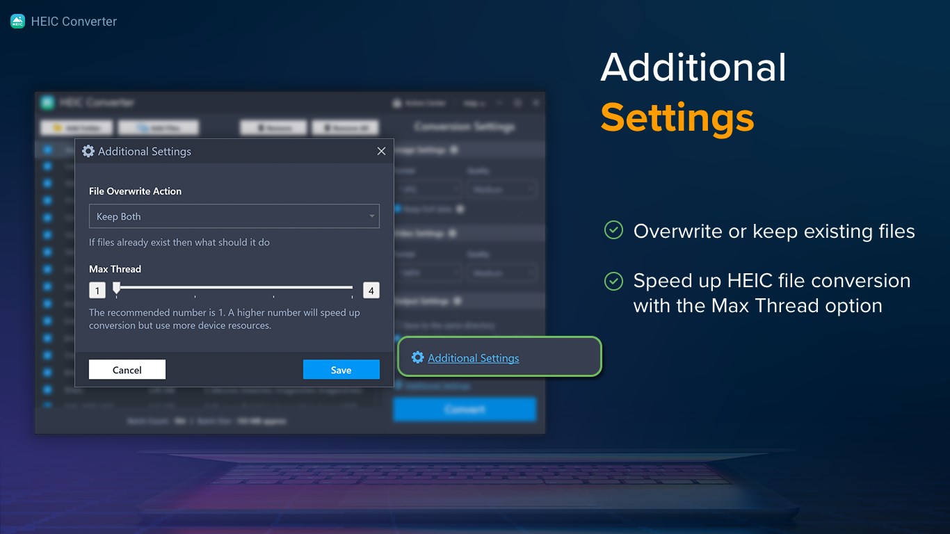 • Add HEIC/HEVC files or entire folders.