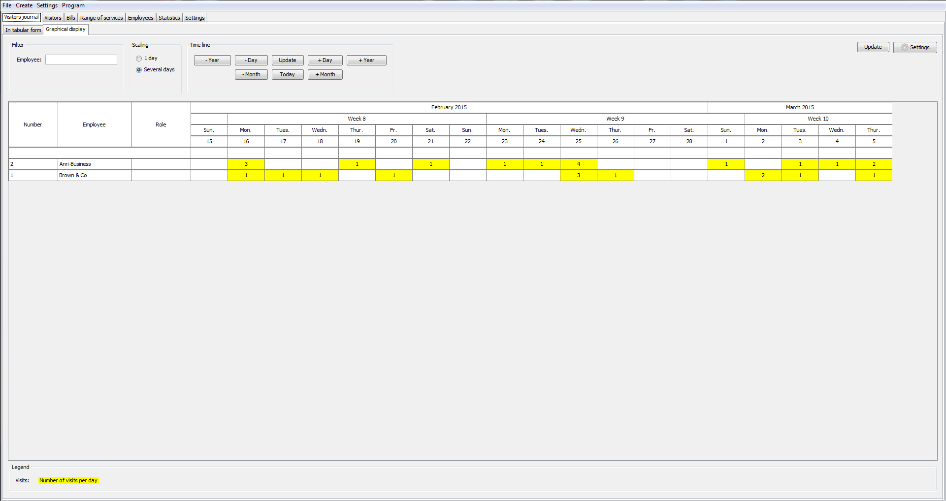 The program has a special visit log that can be easily used for recording who comes, who has a visit reservation and a purpose of visit. You can also add more information about a visitor, for example, entrance fee or number of pass. If necessary, such a visit log can be printed in the required format - CSV or PDF.