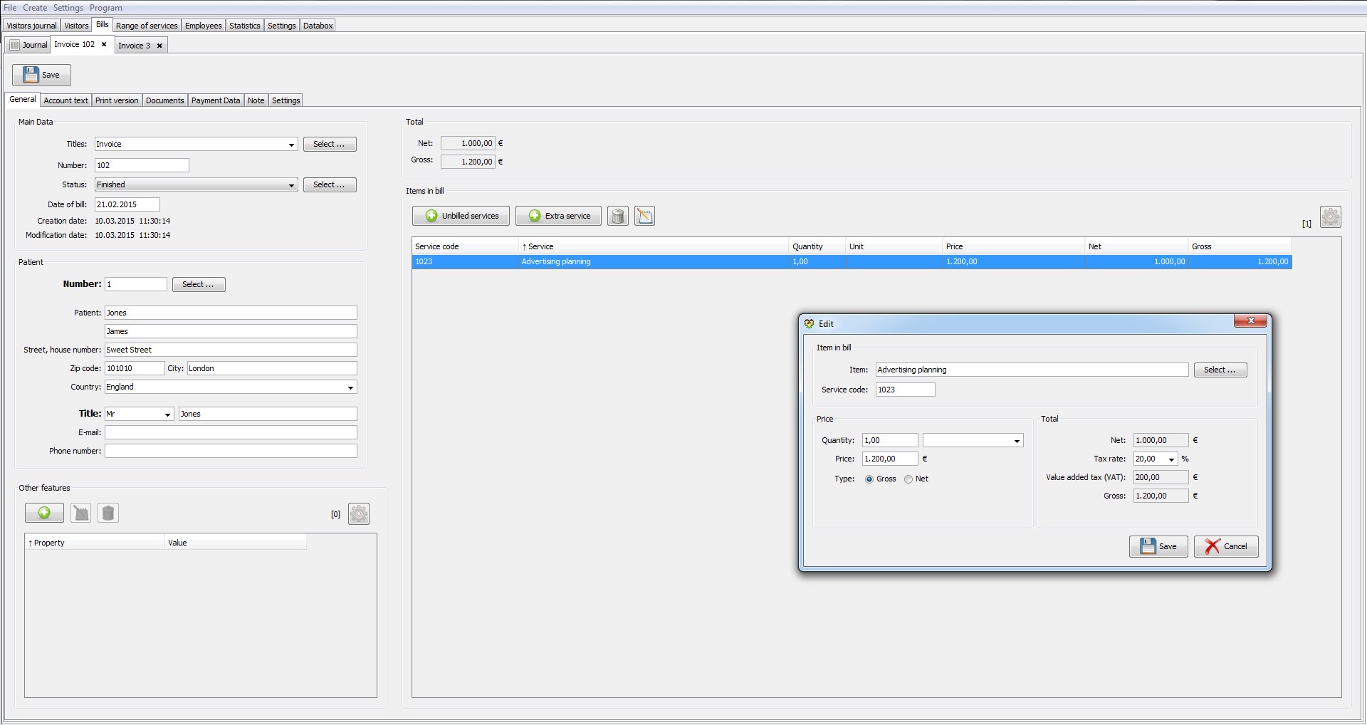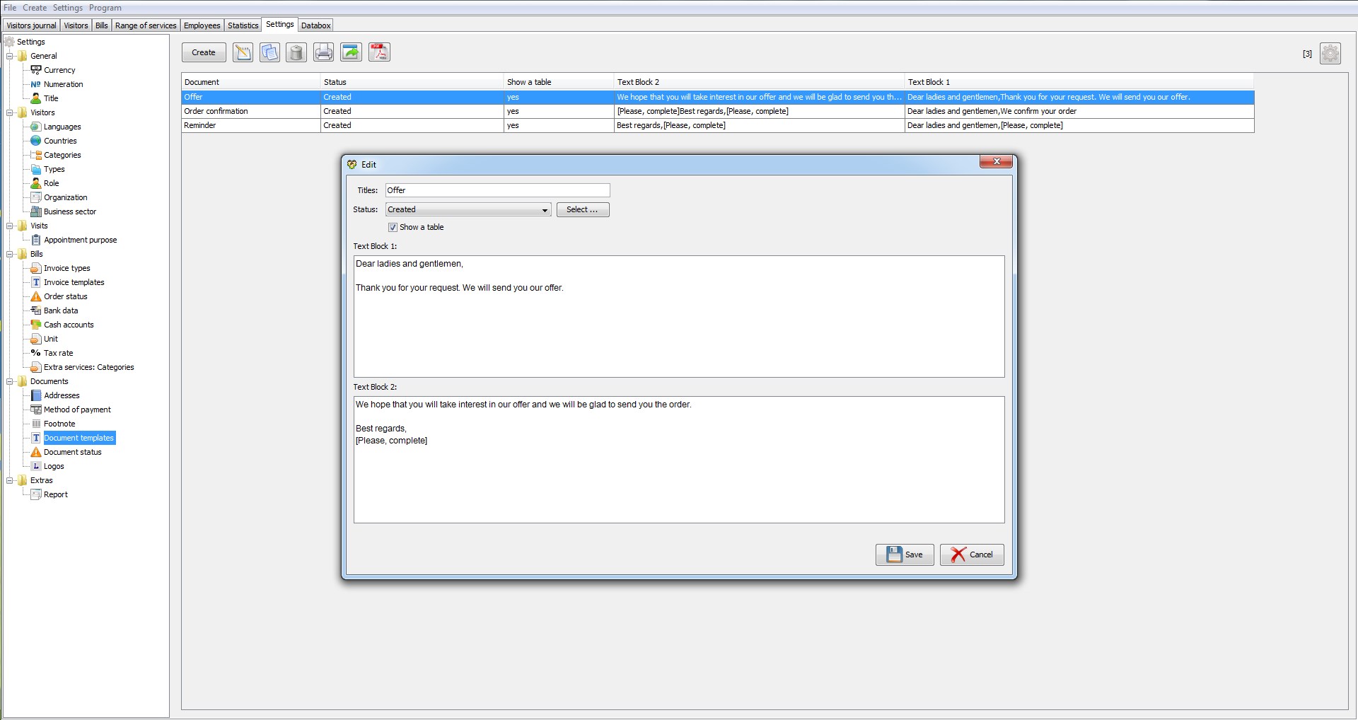 The program gives an opportunity to provide all visitors with different services, and issue invoices. Invoices can be printed (if necessary) in PDF-format.