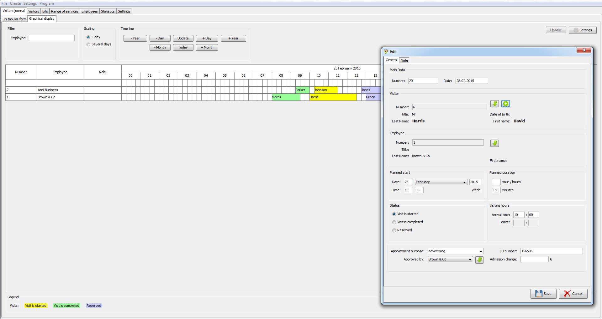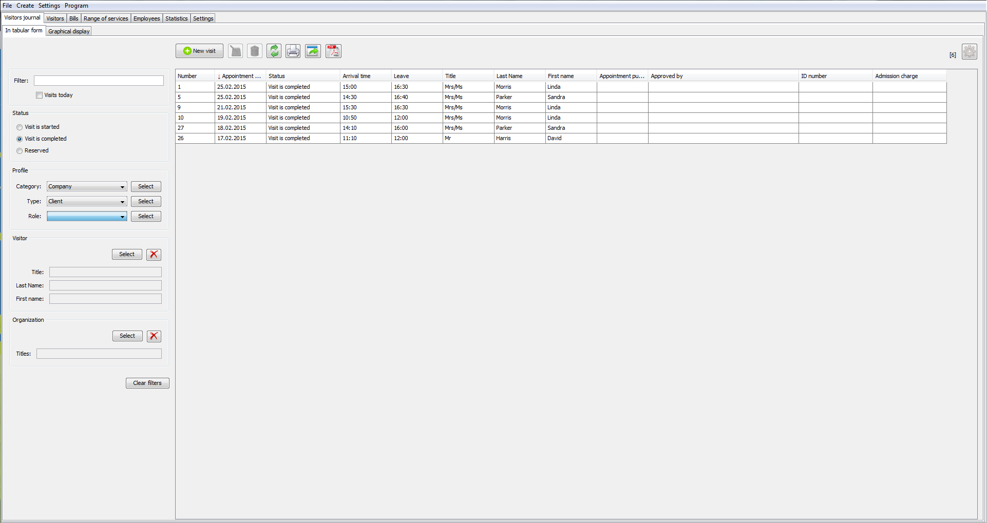 The program makes it easy to maintain a database of visitors. If the visit is already not for the first time, the visitor can be selected from the program list.