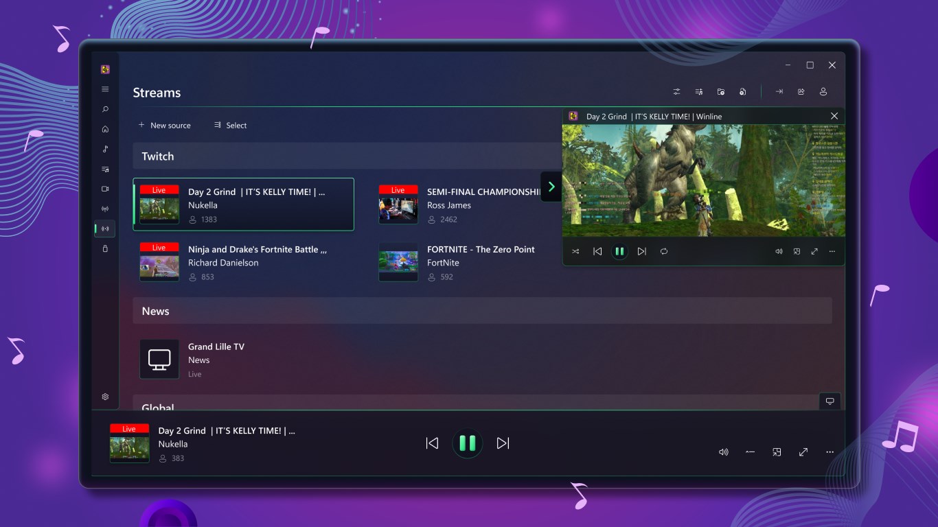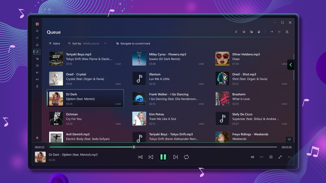 Search, watch and download YouTube videosSearch, watch and download SoundCloud musicWatch TV-Channels and listen to the RadioTwitch Videos, Twitch Clips, Twitch LiveLastFM scrobblingPlaylists and QueuesSubtitlesPlayback directly from external mediaCast to device featureSupported video formats: ".rm", ".rmvb", ".hdmov", ".moov", ".mpeg", ".mpg", ".mpe", ".mpg2", ".mpeg1", ".mpeg4", ".divx", ".dvr-ms", ".ogv", ".mxf", ".m2p", ".dv", ".dif".Supported video formats: ".webm", ".hevc", ".h265", ".265", ".matroshka", ".nut", ".idcin", ".rawvideo", ".wtv", ".pva", ".nsv", ".cdxl", ".xl", ".bink", ".dnxhd", ".yuv4mpegpipe", ".y4m".Supported video formats: ".vc1", ".av1", ".bmv", ".iv8", ".pjs", ".dirac", ".roq", ".smjpeg", ".mjpg", ".cavsvideo", ".thp", ".flic", ".ivf", ".mtv", ".nuv", ".r3d", ".mjpeg", ".vivo", ".avs".Supported video formats: ".mp4", ".mov", ".avi", ".flv", ".mkv", ".vob", ".qt", ".m2ts", ".asf", ".wm", ".wmv", ".ts", ".3g2", ".3gp2", ".3gp", ".3gpp", ".m4v", ".mp4v", ".f4v", ".mts".Supported audio formats: ".sf", ".dts", ".avr", ".ape", ".apl", ".mac", ".mmf", ".aea", ".afc", ".mlp", ".nist", ".sph", ".paf", ".fap", ".xa".Supported audio formats: ".gsm", ".bit", ".voc", ".adx", ".ircam", ".wv", ".vb", ".son", ".iff", ".al", ".mpc", ".oma", ".omg", ".aa3".Supported audio formats: ".rso", ".vmd", ".sbg", ".w64", ".brstm", ".shn", ".tak", ".ass", ".dtshd", ".tta", ".boa", ".vqf", ".vql", ".vqe", ".daud".Supported audio formats: ".mp3", ".wav", ".m4a", ".wma", ".aac", ".wave", ".ogg", ".adt", ".adts", ".ac3", ".ec3",".flac", ".amr", ".au", ".aiff", ".aif", ".aifc", ".caf", ".qcp", ".act".
