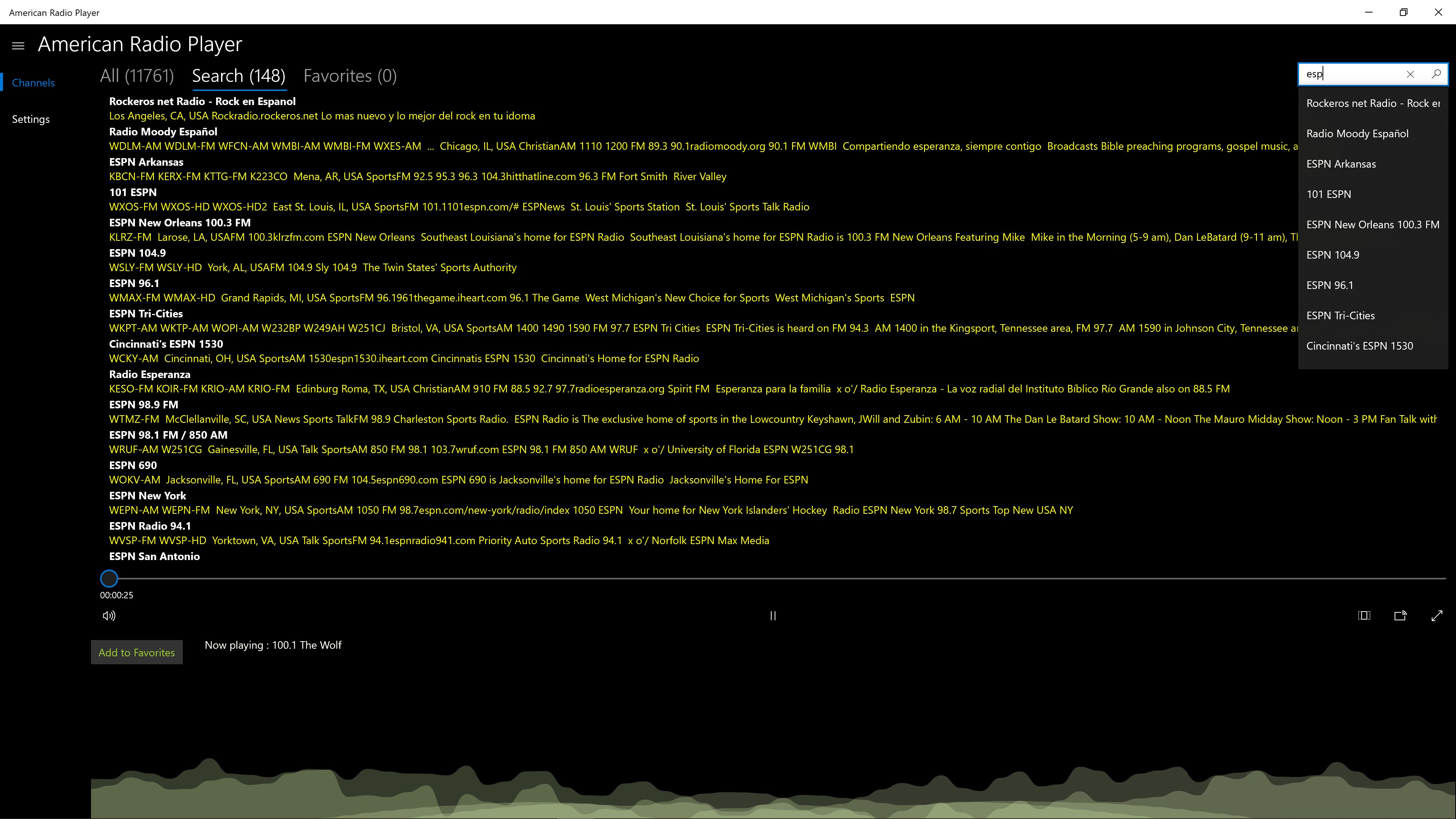 Search stations and/or add to Favorites List.