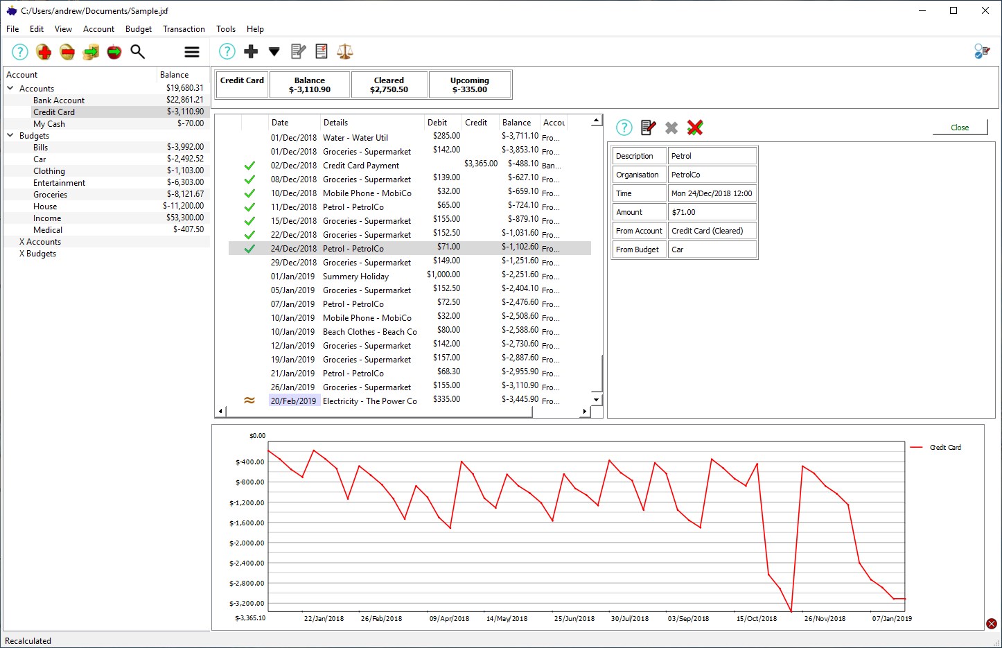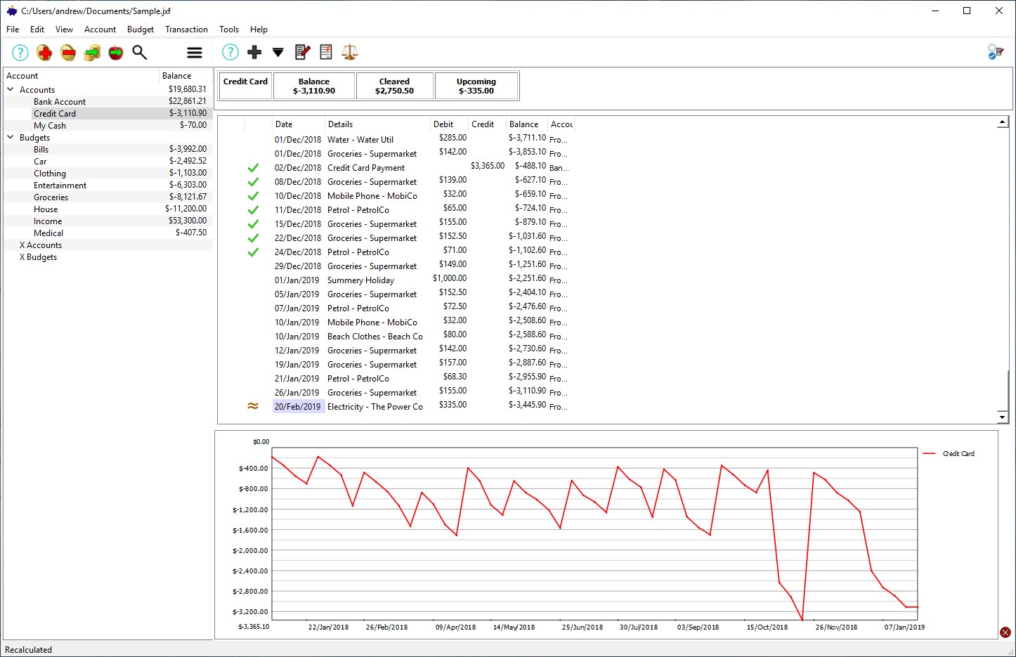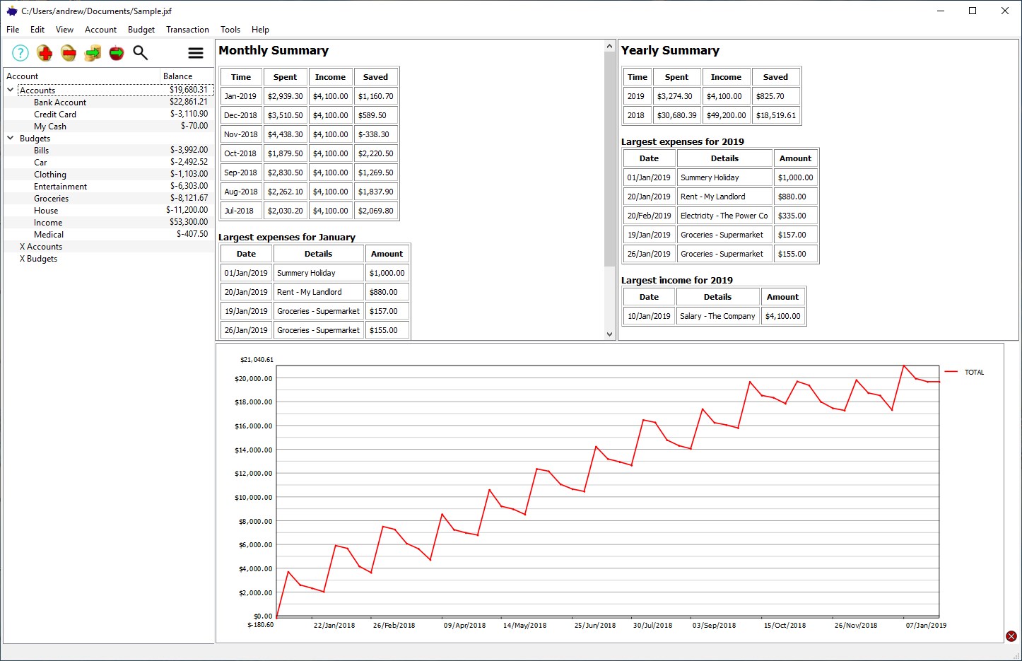JXCirrus Finance lets you take control of the chaos of your home finances. Follow and check the balance in all of your bank accounts - JXCirrus Finance tracks every transaction and lets you tick them off against your bank statements. Create budgets to track where the money is going to, and graph them over time.