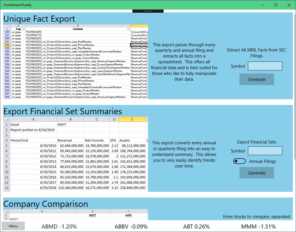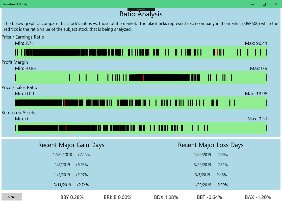 Investment Buddy provides you with data and information that is key to making an investment decision. Data is provided in an easily accessible manner, saving you from having to scour the web for bits of information from here and there.