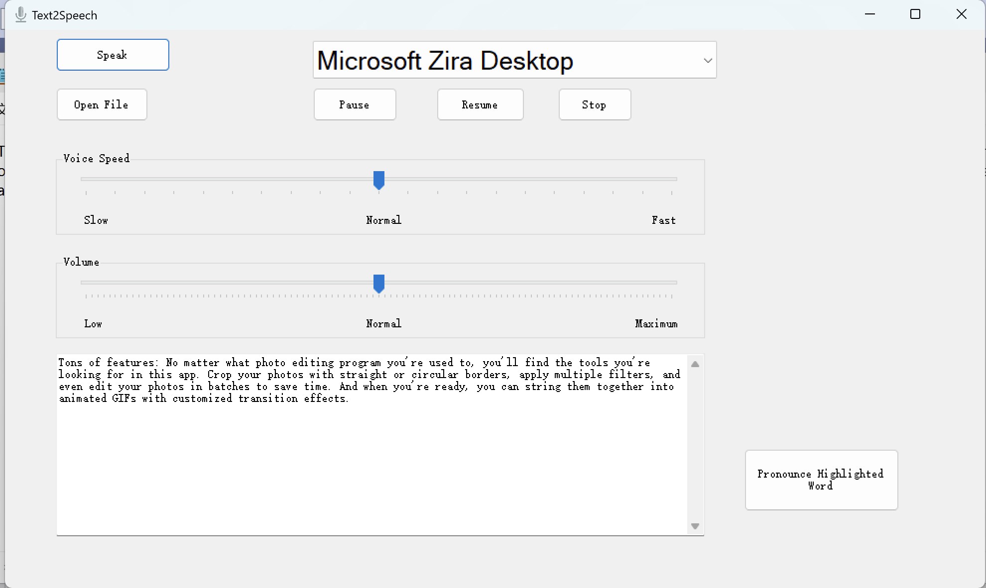 With this program you can use standard Windows Forms text to read aloud the selected text, which is very useful for listening to the audio of long and troublesome sentences and for proofreading sentences you create.