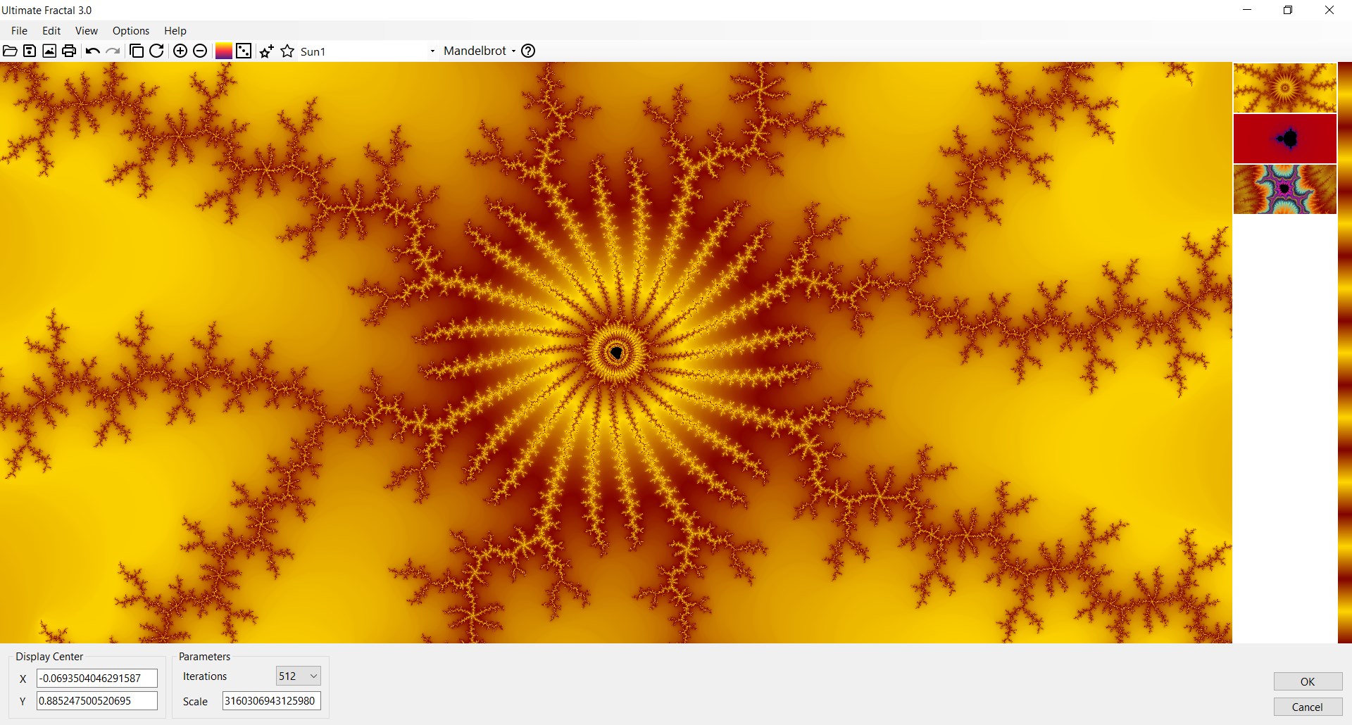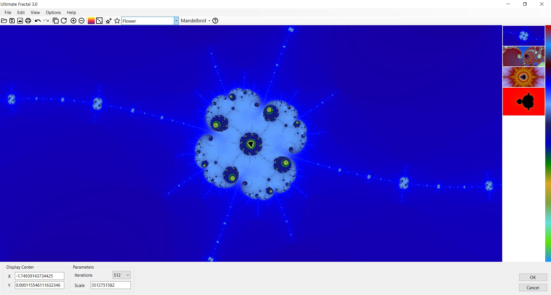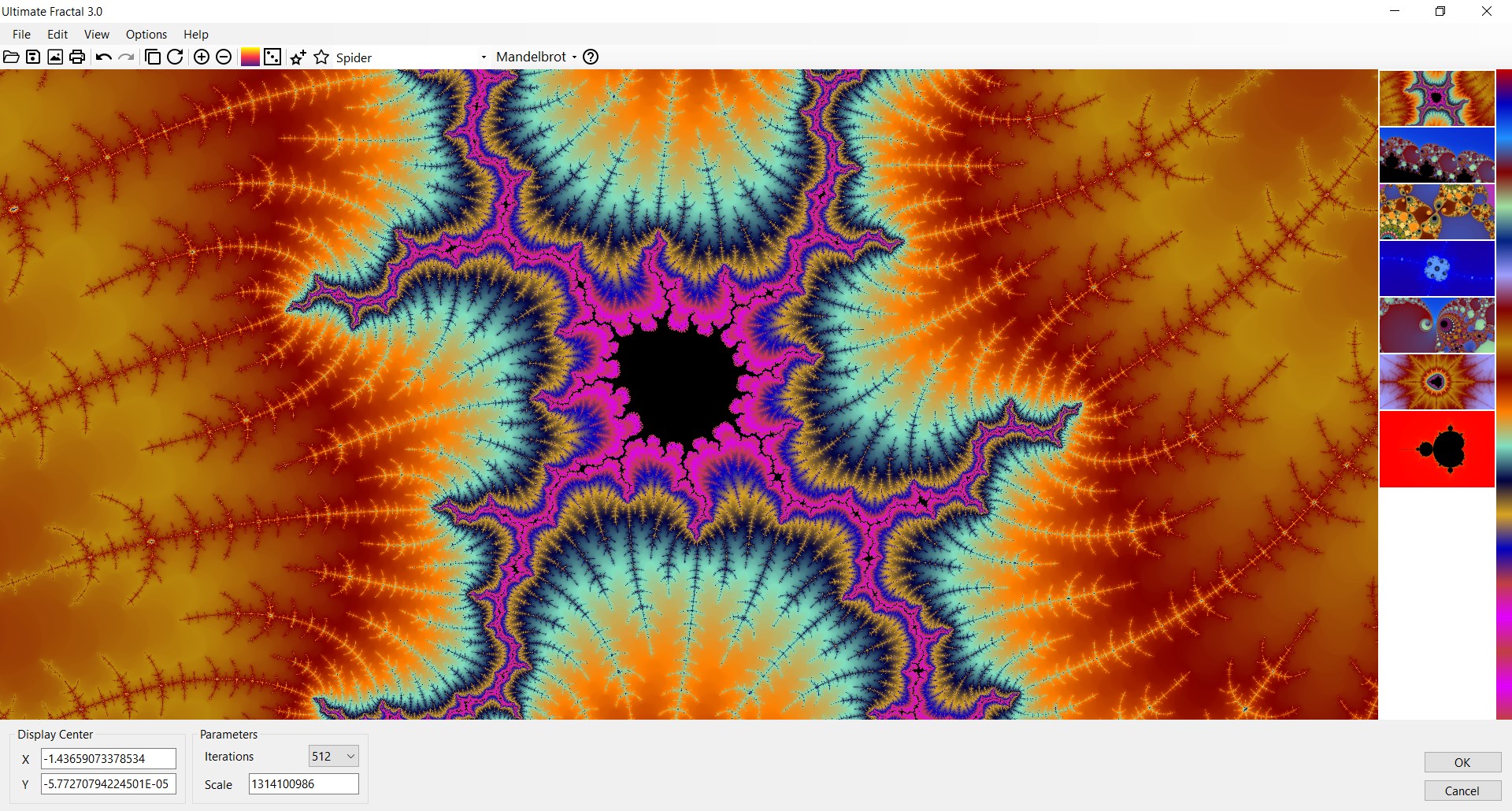 Explore the wonderful world of Fractals. Fractals are complex, detailed geometric patterns found throughout the natural world. Plants, clouds, coast lines, blood veins and snow flakes are examples of natural fractals. Ultimate Fractal generates fractal designs of amazing detail. They are created using mathematical formulae and are infinite in their ability to be viewed in ever increasing detail. The closer you look the more detail there is. They can be incredibly mundane or extraordinarily beautiful!