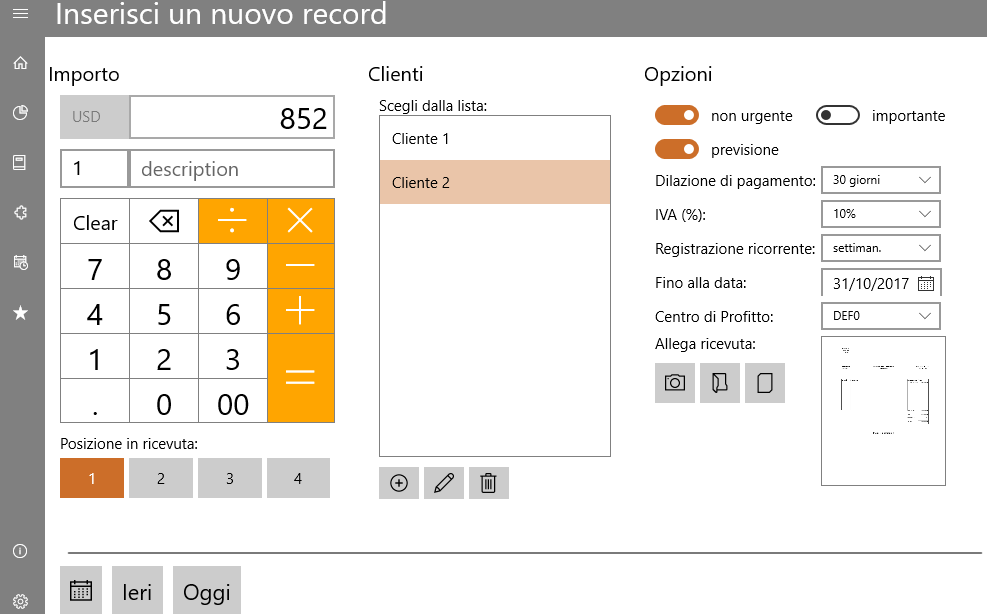 - Scan the receipts and attach them to the costs, useful for purchases under warranty