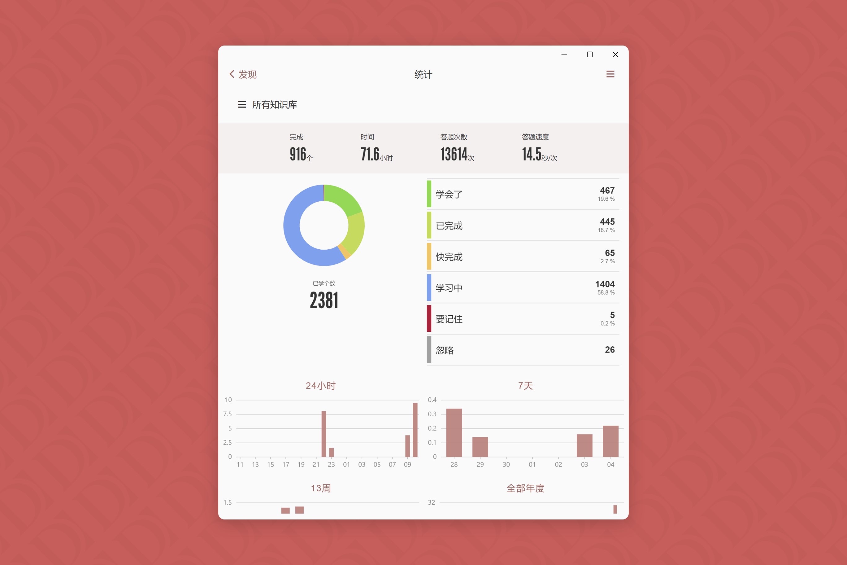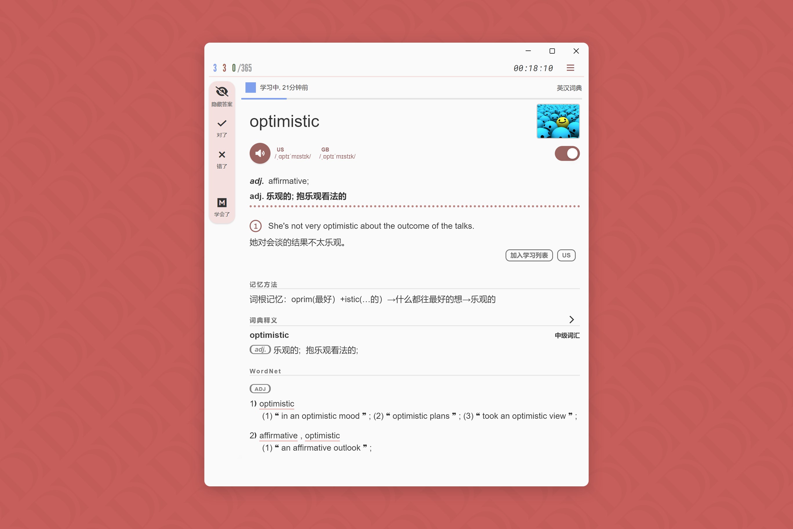 4、学习页面,答题栏中默认显示\“升级\”按钮,升级的词条当次学习中不再重复出现;