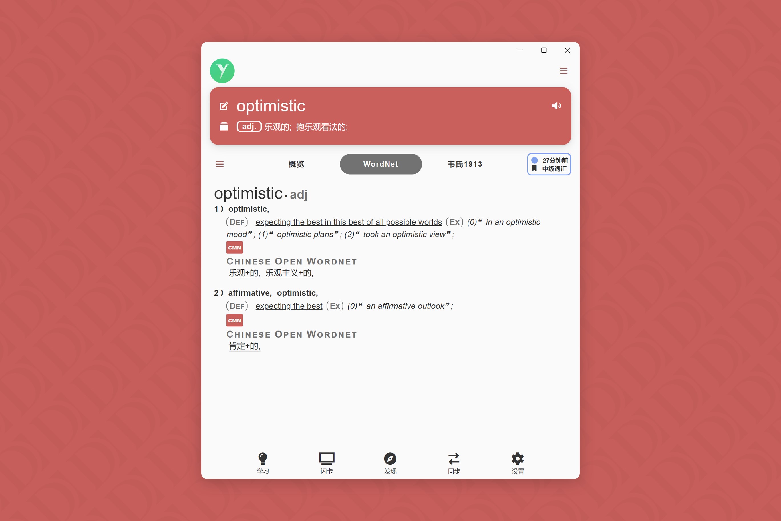 支持中英双语;其他语言的词典也将陆续加入;内置多语言WordNet;内置「韦氏1913」英语词典;支持通配符查词;内置大量词典例句及网络例句;支持闪卡;支持学习功能,兼容「易呗单词」及旧版「易呗背单词」;支持易呗账户登录及同步数据;支持iOS、macOS、Android和Windows等所有主流平台,各平台之间可以同步查词历史等数据;更多功能等待你去探索,...