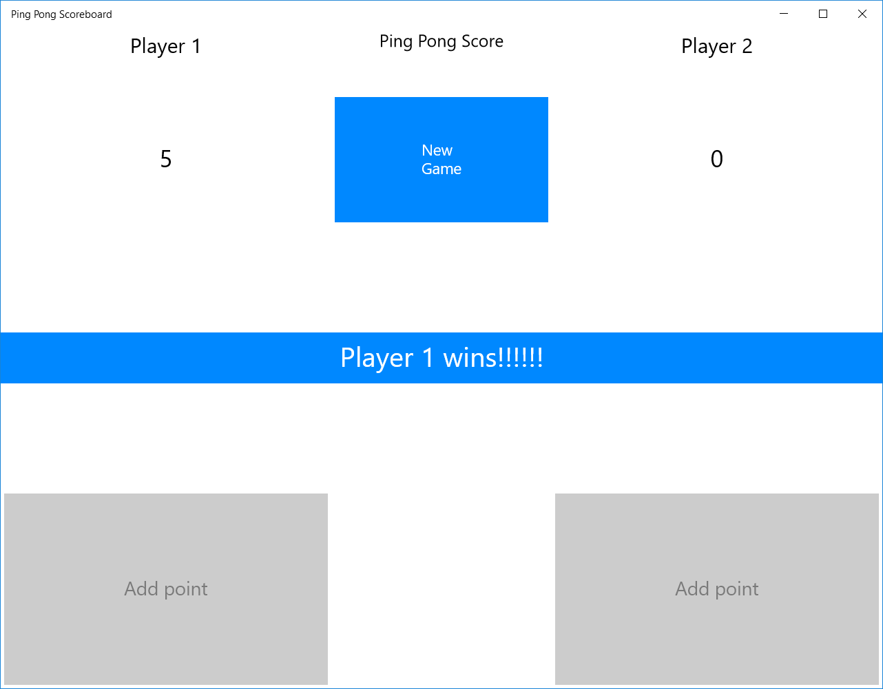 Keep score easy and fast with this ping pong scoreboard app. A game consists of 5 sets, the winner is shown in the end. It's that simple!