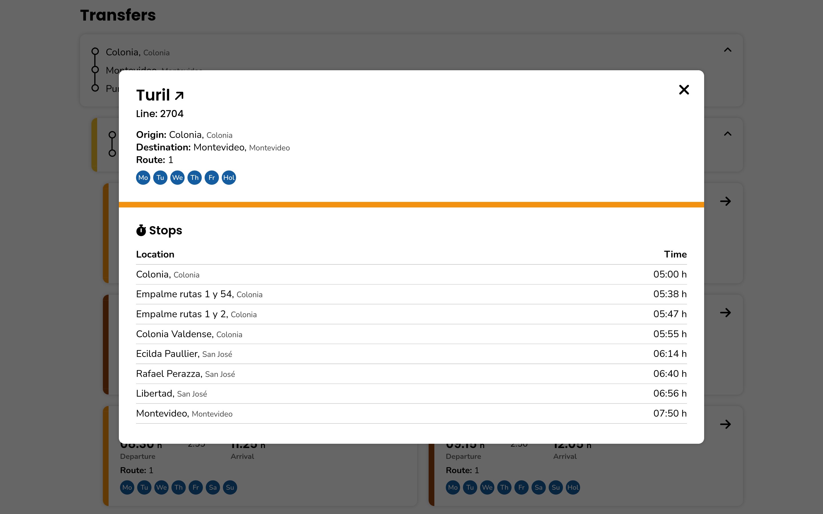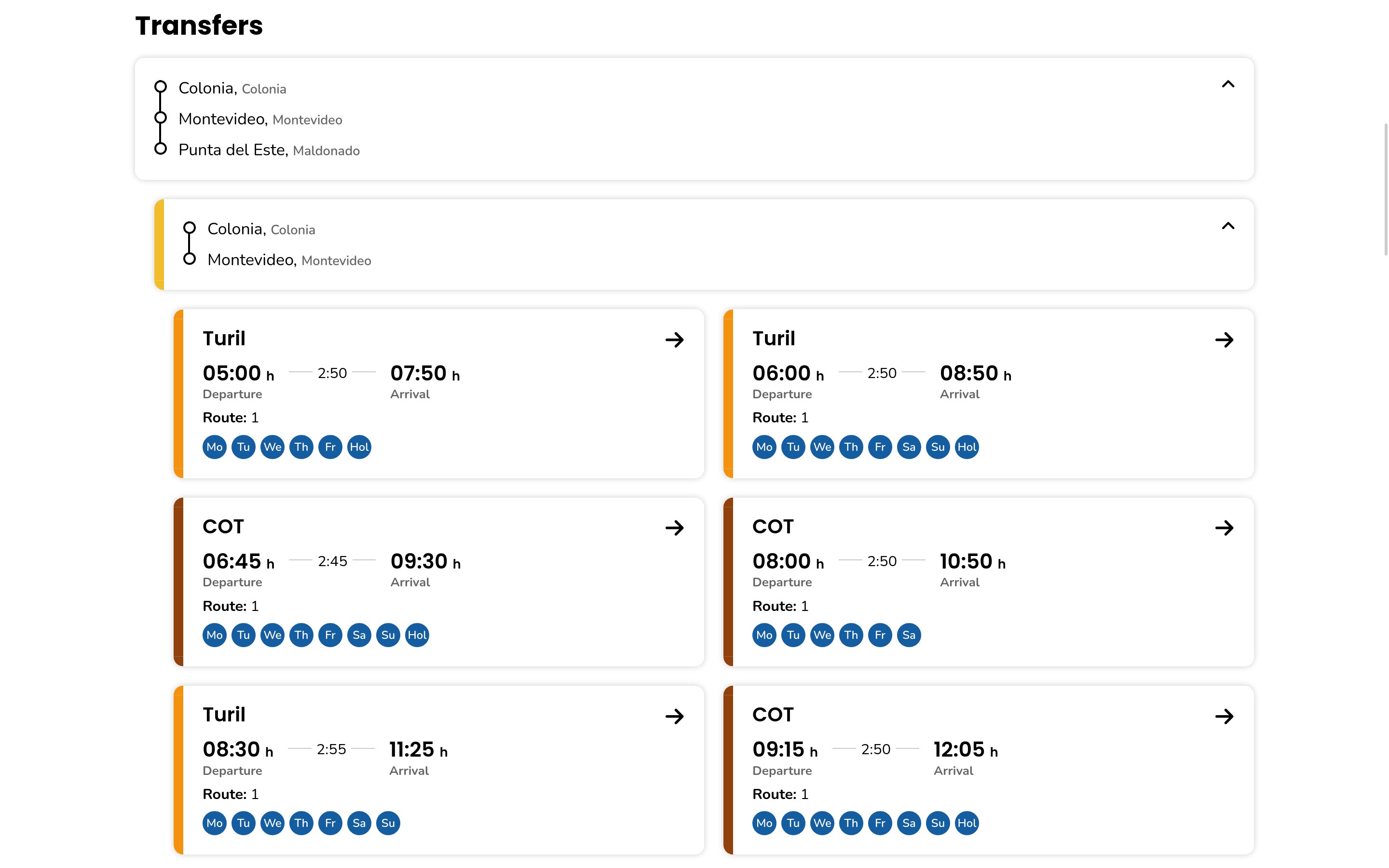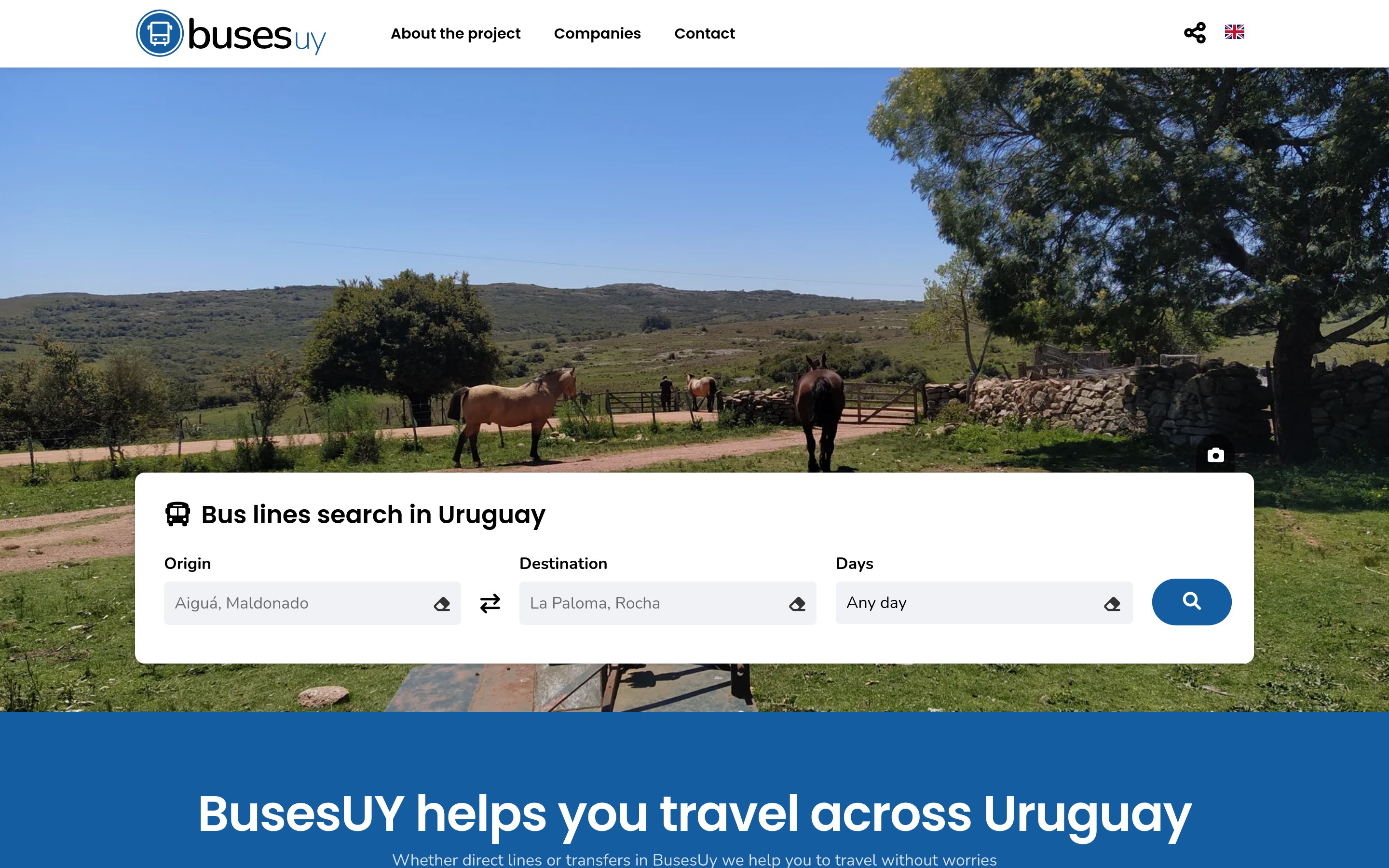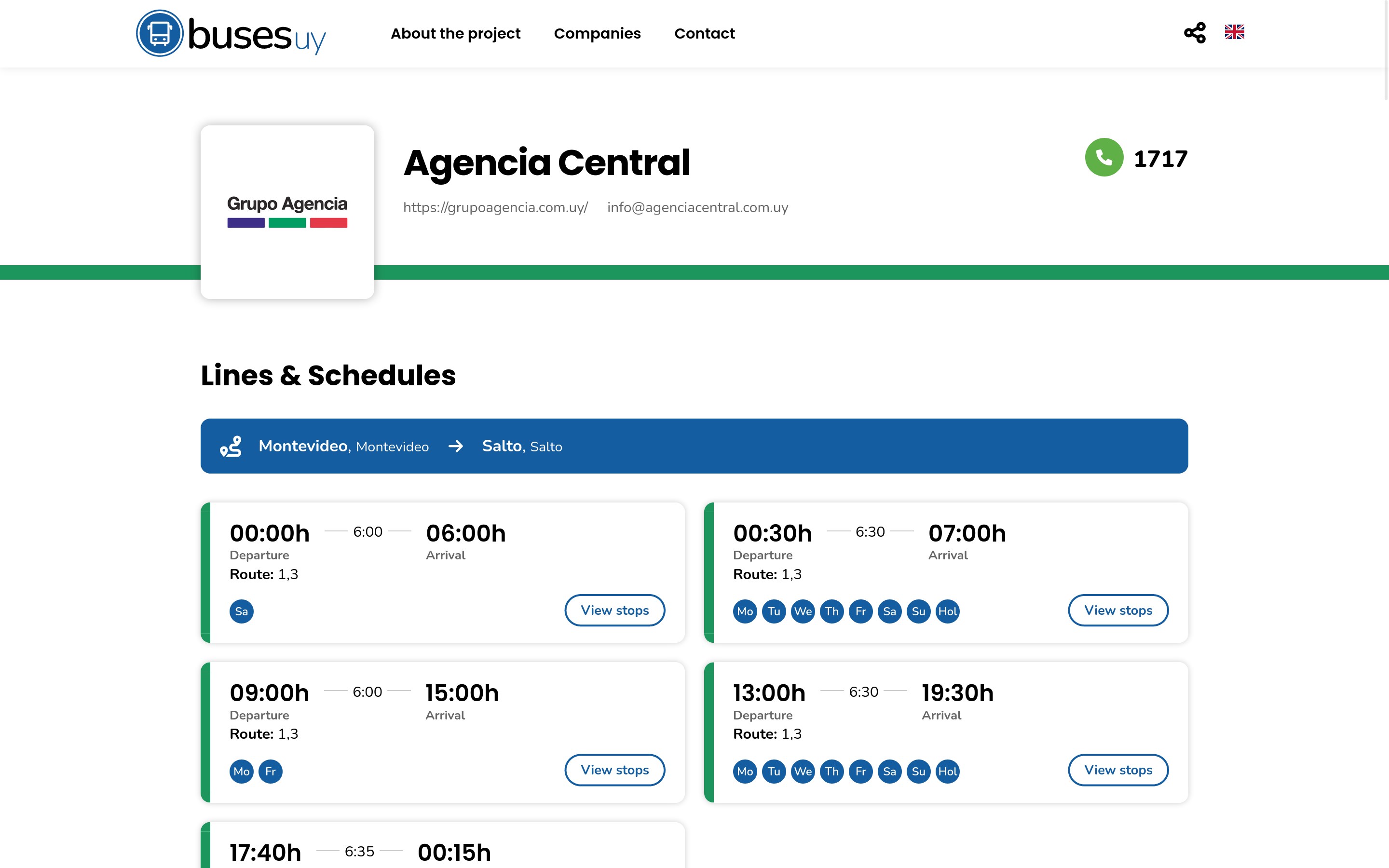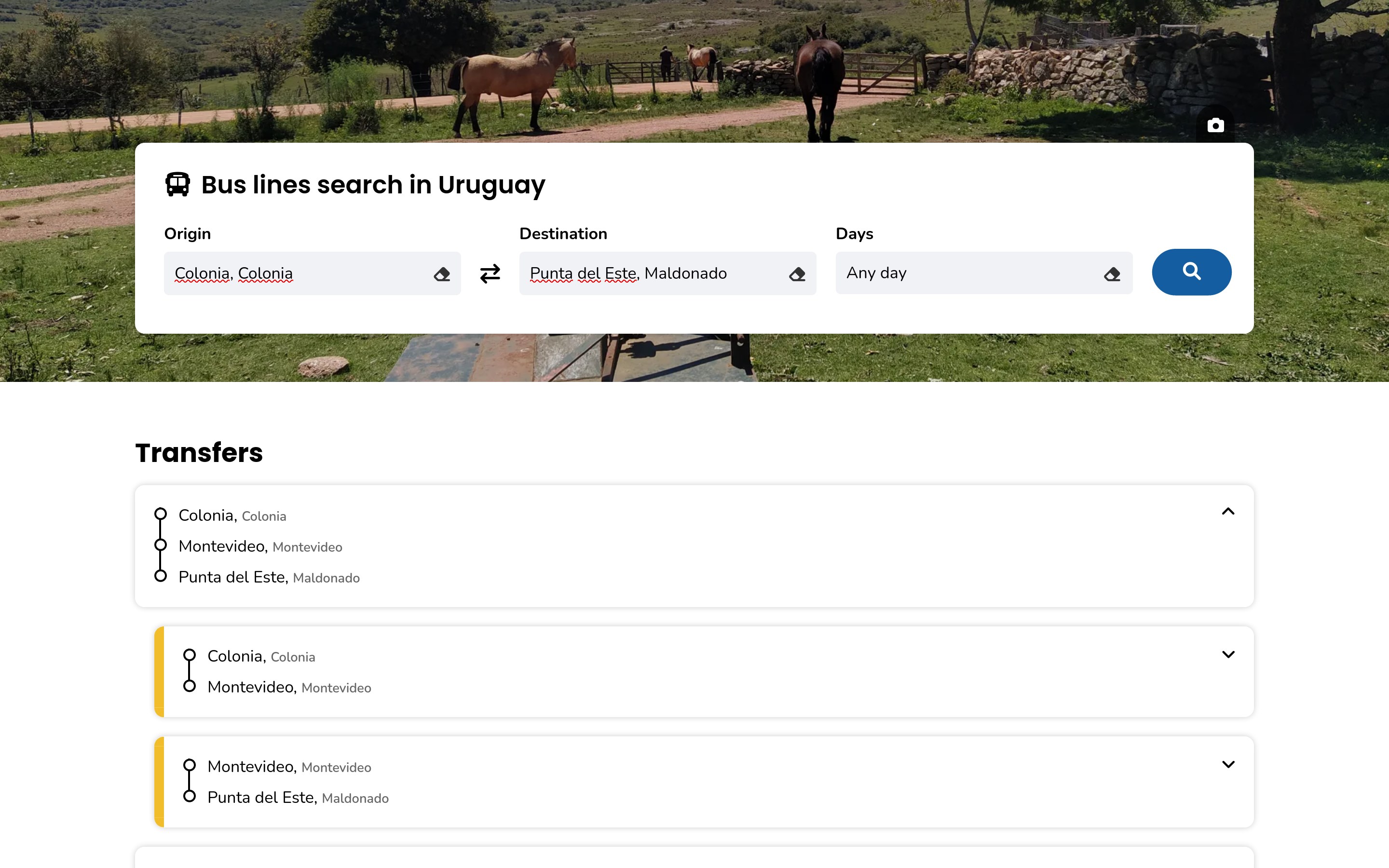 Search for long distance interdepartamental and international bus lines in Uruguay. Includes possible transfers.