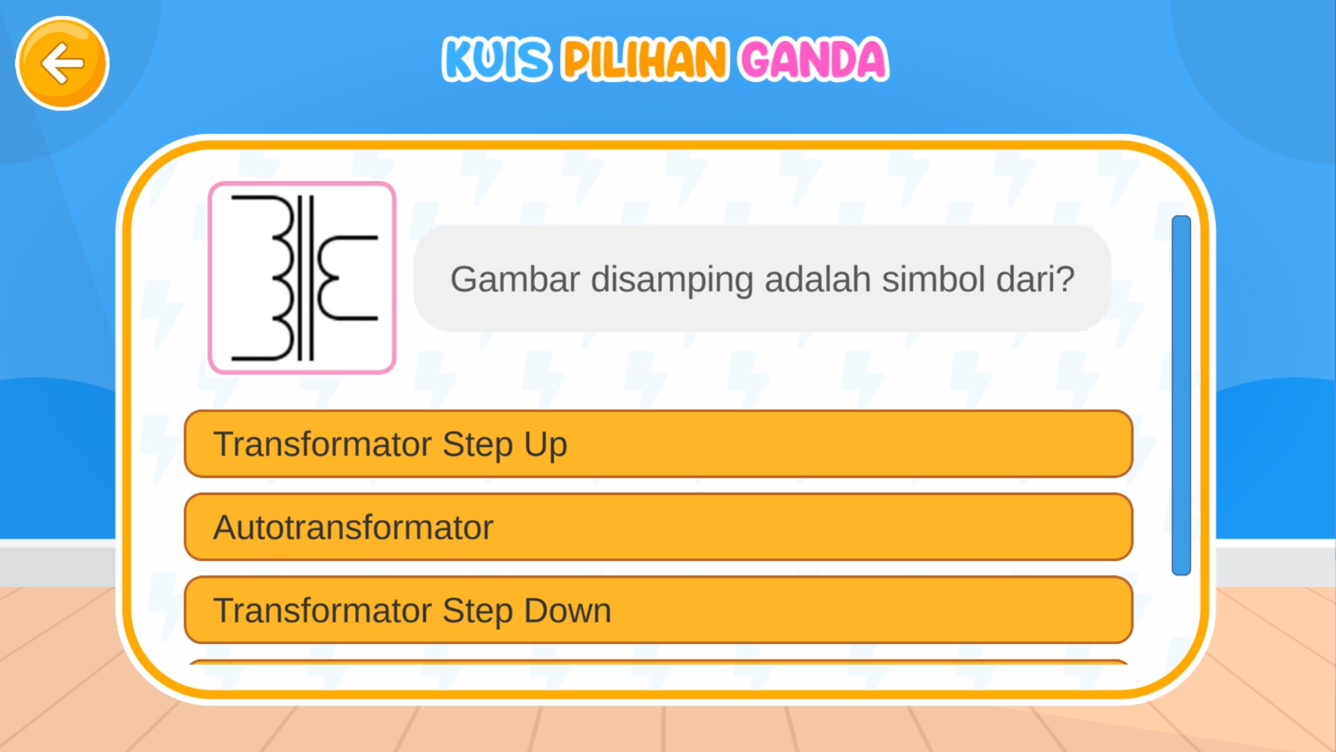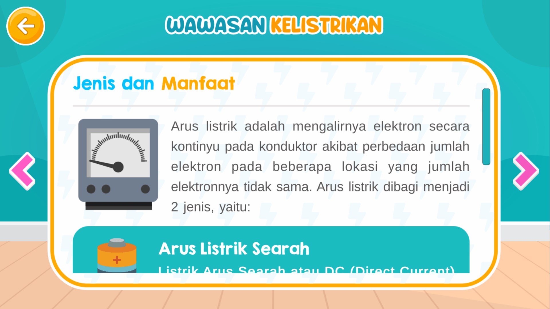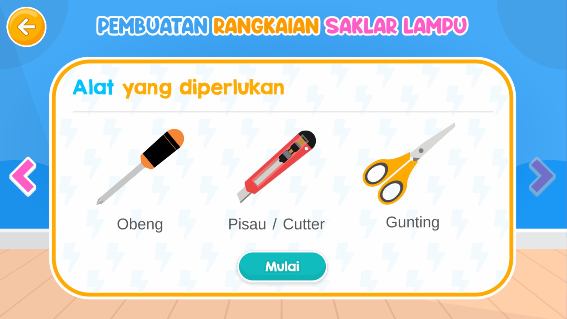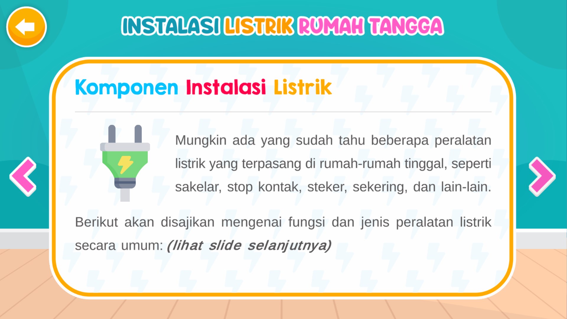 Aplikasi Edukasi Prinsip Kelistrikan dan Instalasi Listrik Rumah Tangga -Aplikasi ini berisi materi wawasan kelistrikan dasar dan materi dasar instalasi listrik rumah tangga. Selain itu terdapat juga simulasi pembuatan rangkaian listrik instalasi rumah tangga.