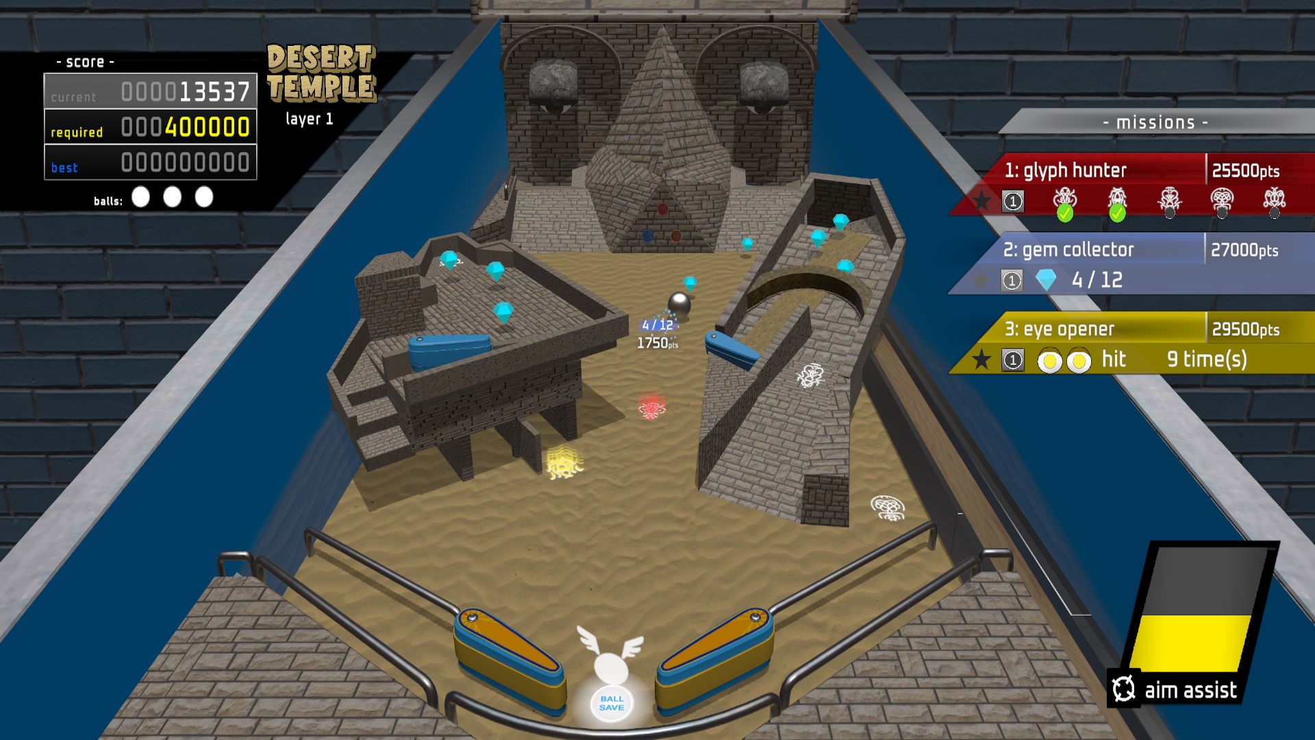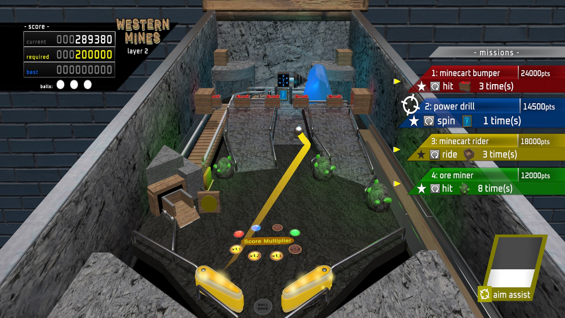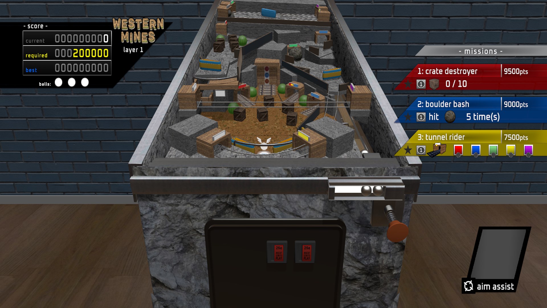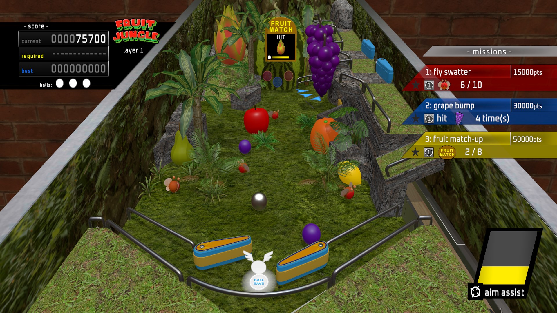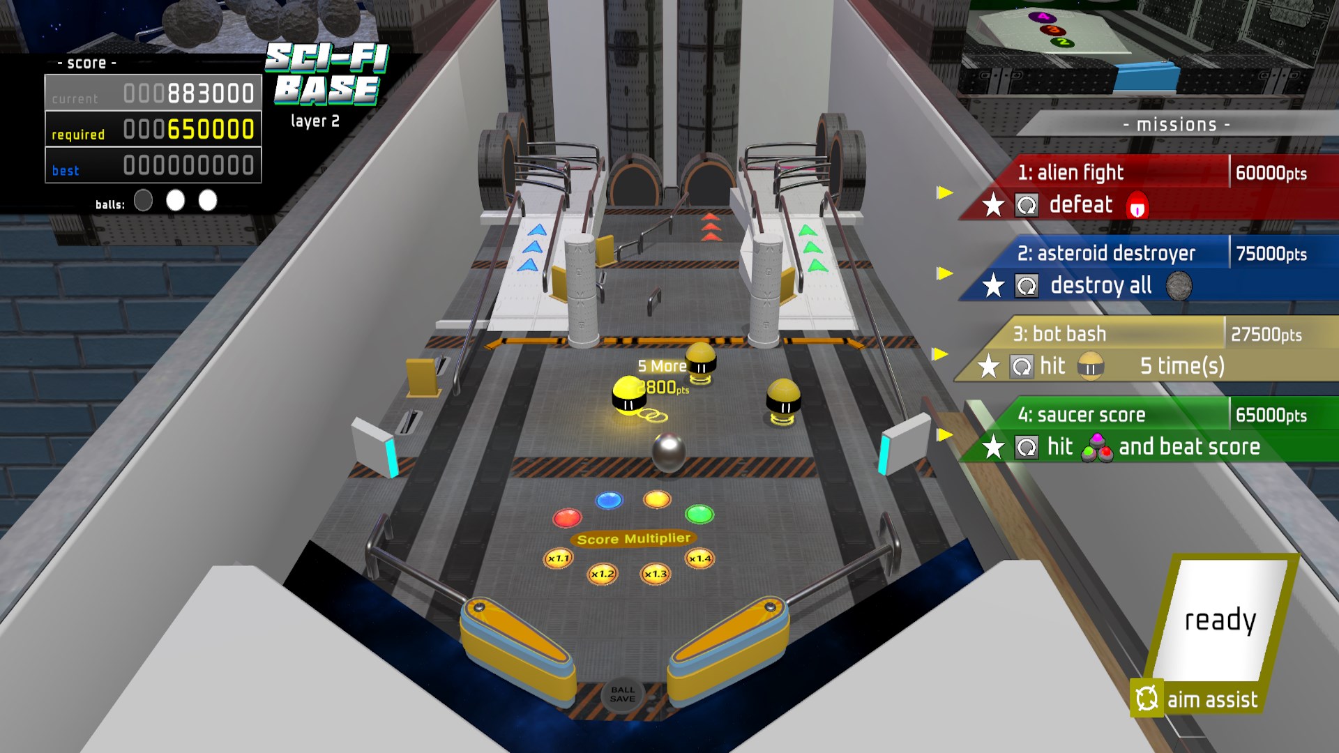 There are 4 tables in total, each with their own visuals and challenges. After completing all the missions on the 1st layer, you gain access to the 2nd layer. Try to score enough points before losing all your balls because once you do, it's game over. Each table will keep your best scores for you to overcome the next time you play. Enjoy this unique way to play pinball!