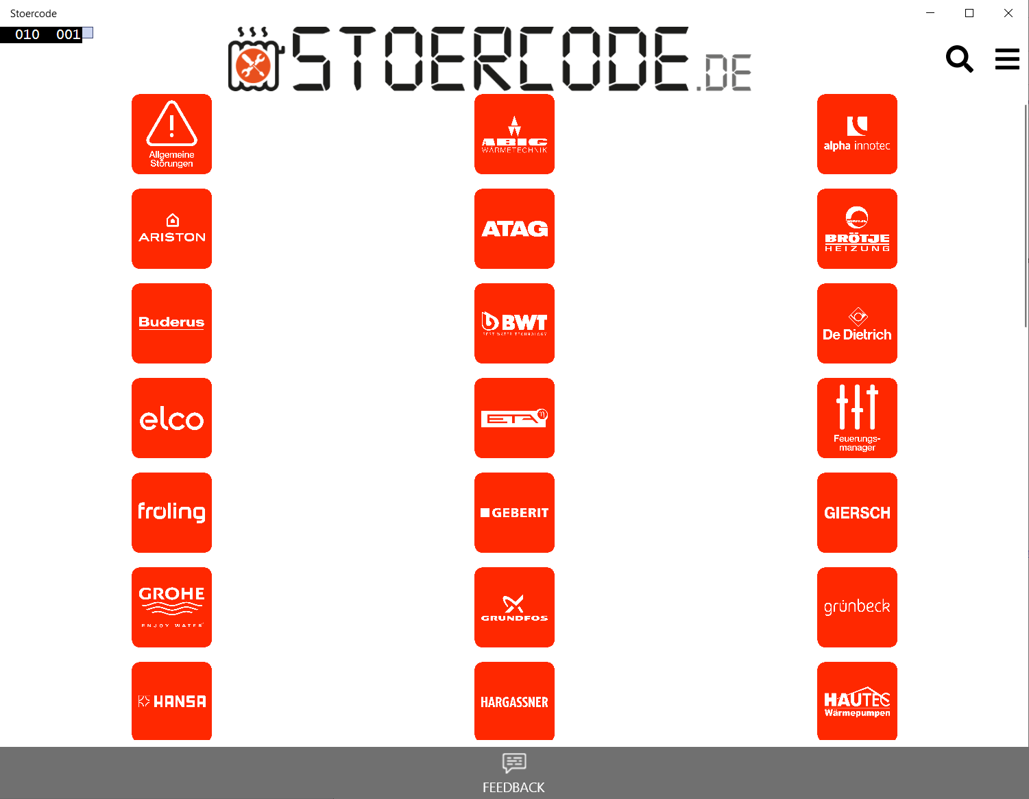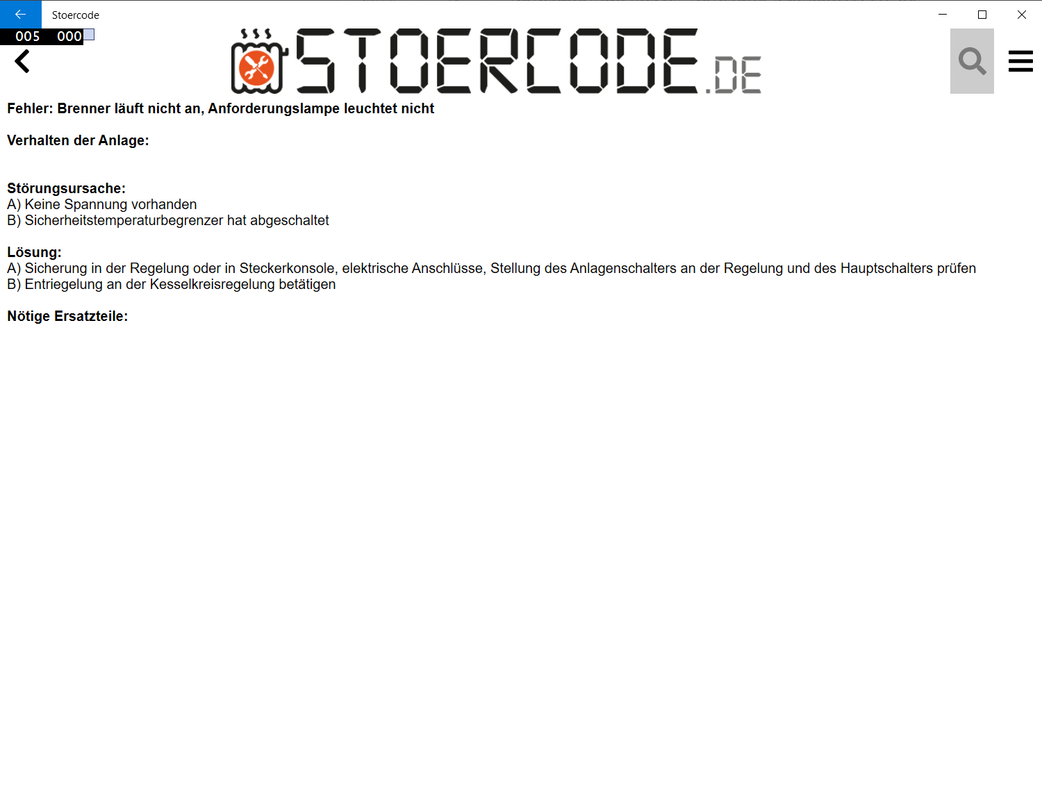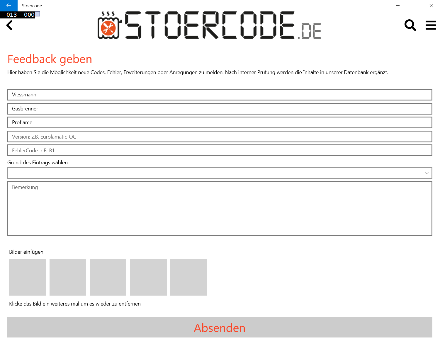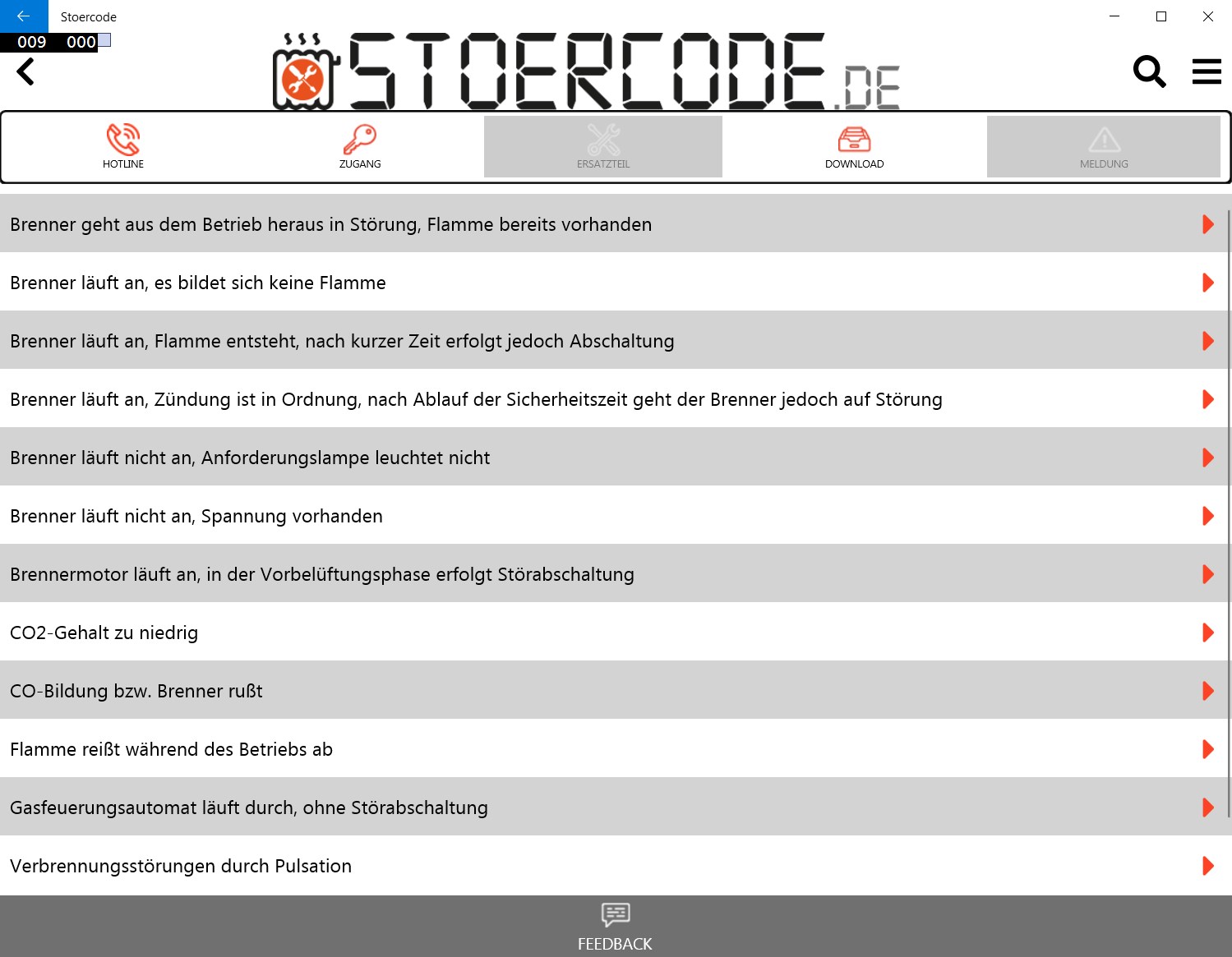 Mit Stoercode.de haben die Nutzer die Möglichkeit, über 200.000 Fehlercodes und deren Lösungsmaßnahme verteilt auf über 5.000 Geräte von aktuell 100 Heizungs- und Sanitärherstellern online abzurufen. Zudem bietet die App Zugriff auf mehr als 4.000 Dokumente wie Serviceanleitungen und Ersatzteillisten sowie 4.000 Wartungschecklisten. Das perfekte Tool für den professionellen Heizungsbauer. Diese App ist die ideale Ergänzung zu Ihrem bereits bestehenden Webportal. Für den Zugriff auf störcode.de benötigen Sie einen gesonderten, kostenpflichtigen Zugang, der nur für lizensierte und eingetragene SHK-Unternehmen bereitgestellt wird. Die Anmeldeformulare und weitere Informationen finden Sie auf www.stoercode.de