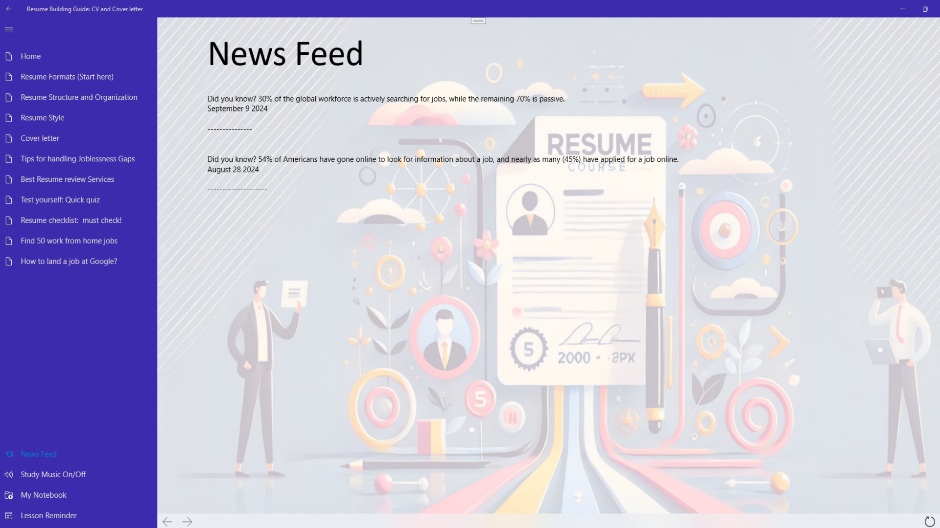 Our app draws on industry-leading insights from hiring managers and career coaches to provide you with all the knowledge and techniques you need to create a powerful resume. From understanding what recruiters look for to avoiding common mistakes, we cover every aspect of resume building, making sure you're prepared for every opportunity.
