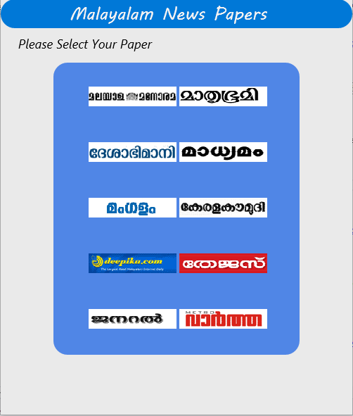 Get all Malayalam Newspaper in your finger tip with all new design and easy navigational application.This simple application helps you to read all popular Malayalam news papers in a simple click.