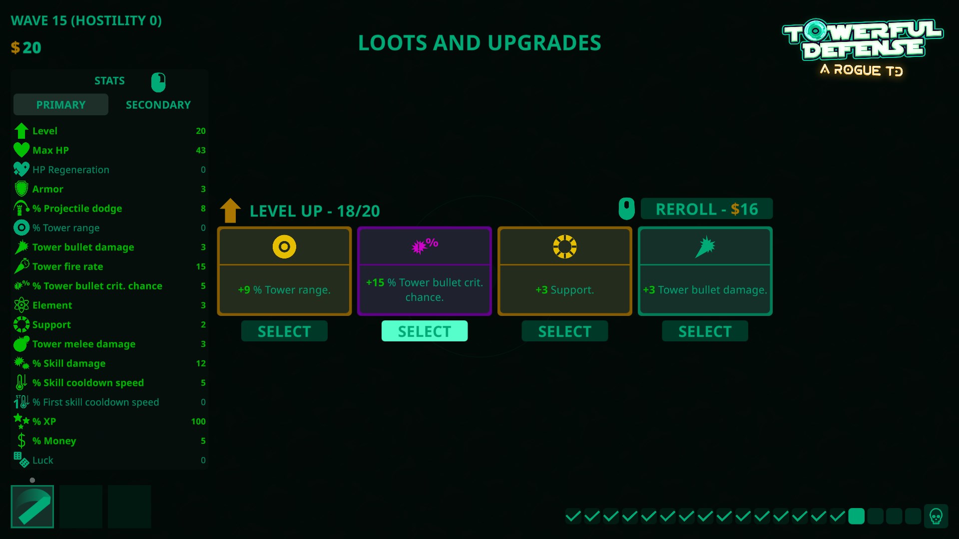 - Towers with different buffs, and play-style-changing effects