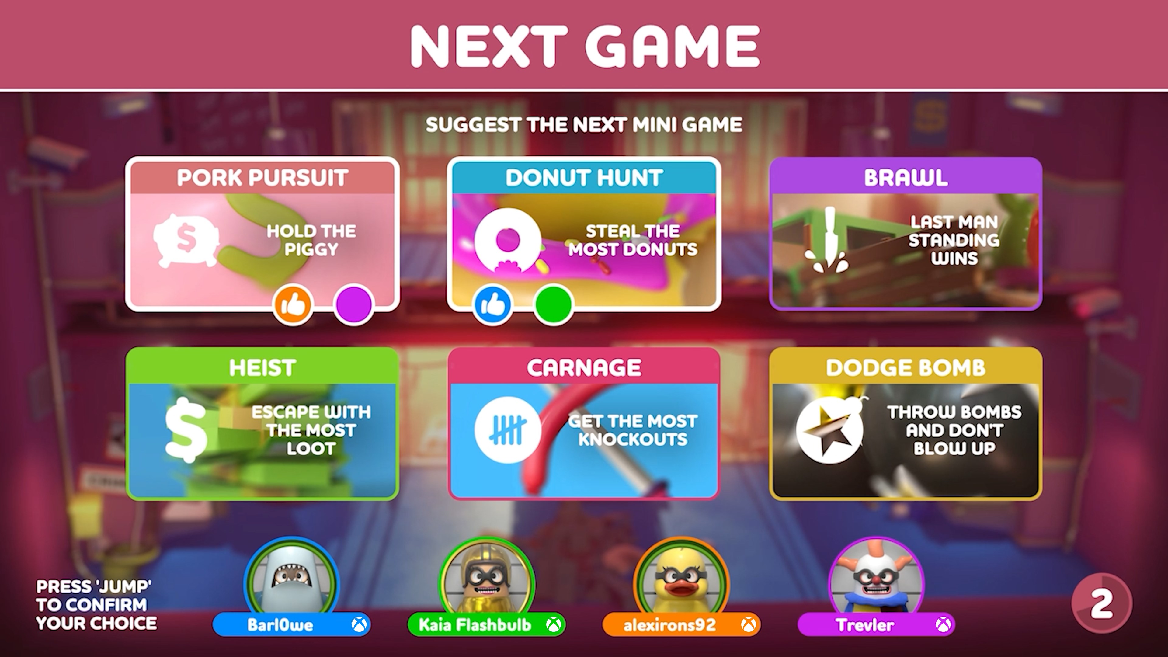 Chaotic Capers: Assert your status as Top Bandit across various zany game modes, including Pork Pursuit, Snack Attack, Brawl, Heist , Carnage, Dodge Bomb and Arcade! Can you master them all, and become the ultimate Bandit?