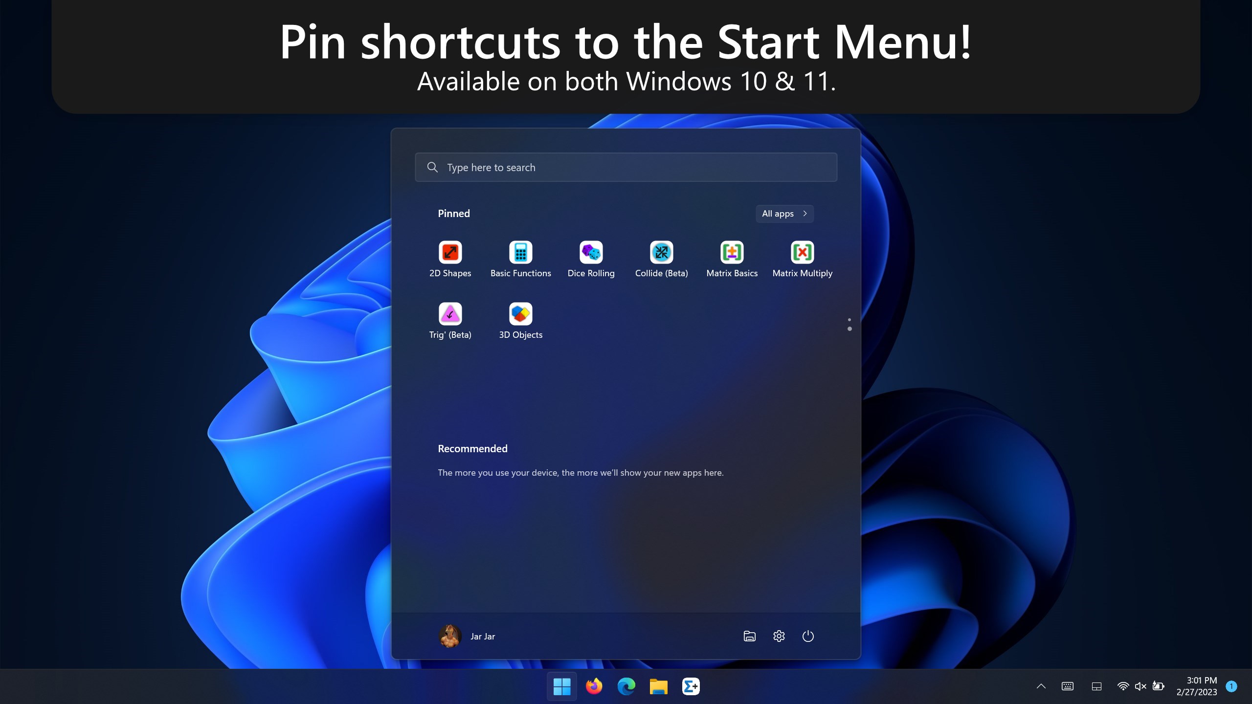 -Ability to pin shortcuts to the Windows 11 Start Menu.