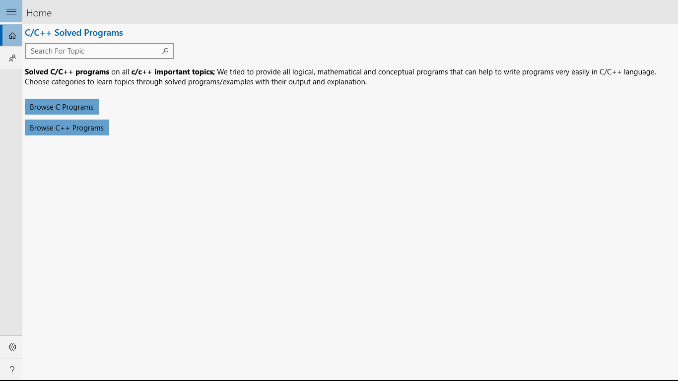 Solved C/C++ programs on all c/c++ important topics; We tried to provide all logical, mathematical and conceptual programs that can help to write programs very easily in C/C++ language.