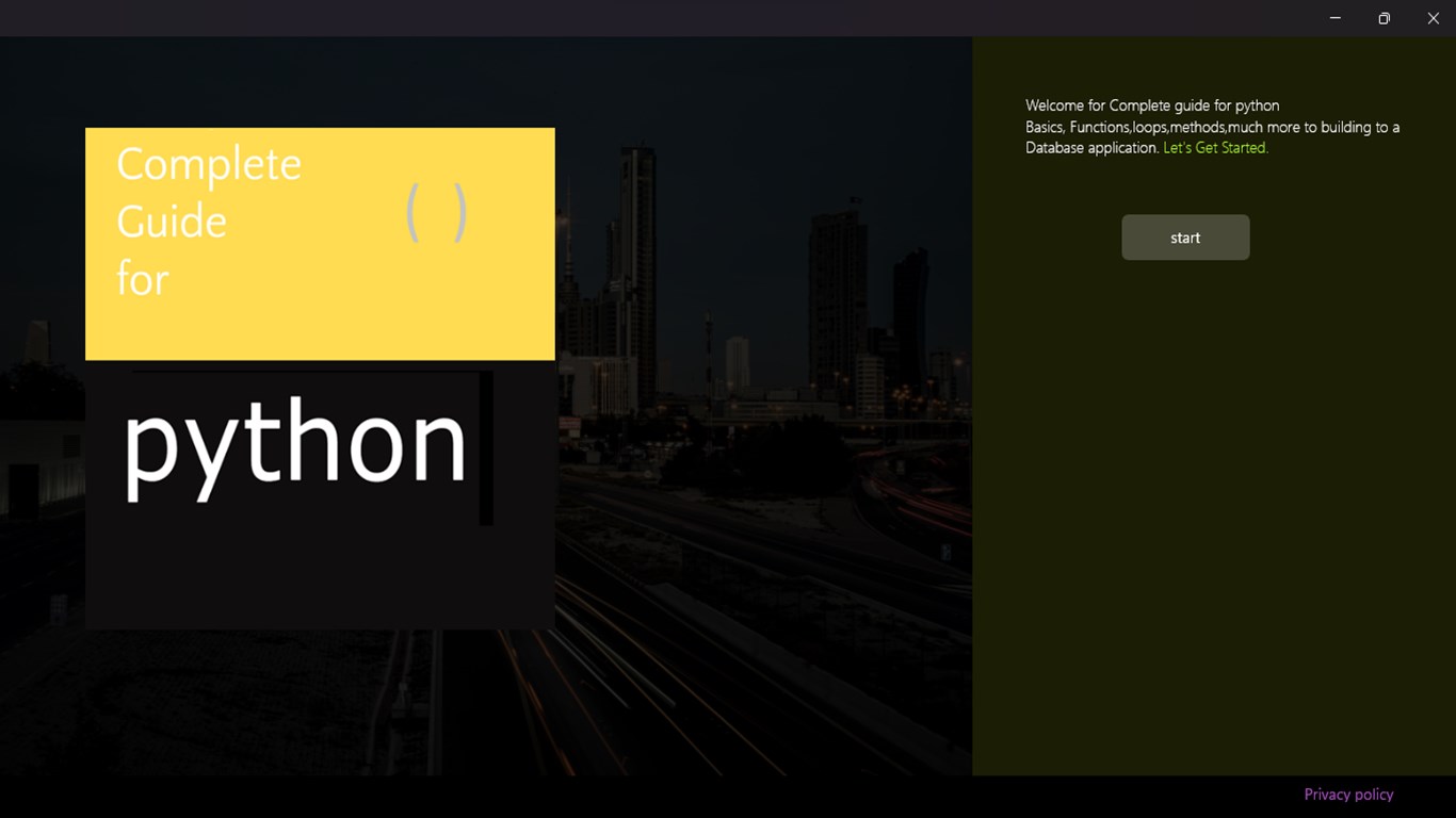 Get Started with Complete Guide for Python with hands on experience on Buidling the Database application with python. functions, loops, File IO, Conditions, much more making easy access and content.