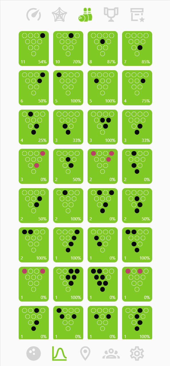 Underneath each pin fall you will see how many times this combination happened to you and how often you manage to convert this pin fall to a spare.