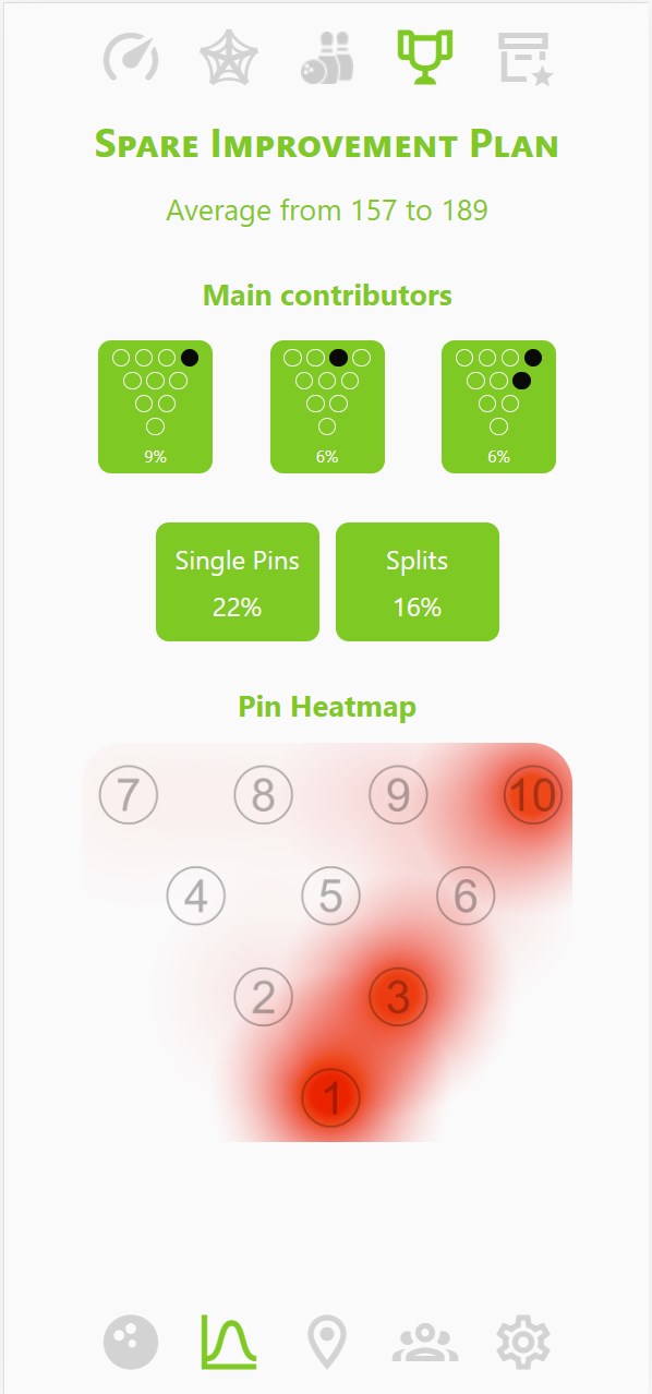 In this screen you can see how much you can improve your average if only you clean the frame by better spare game. The number is ften chocking.