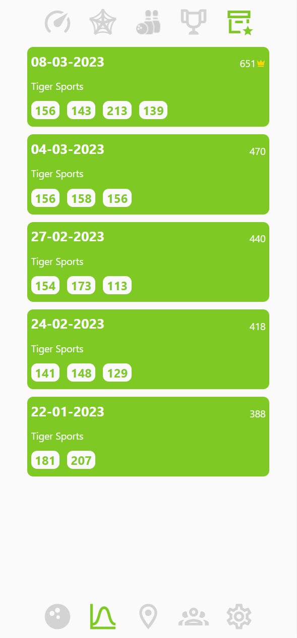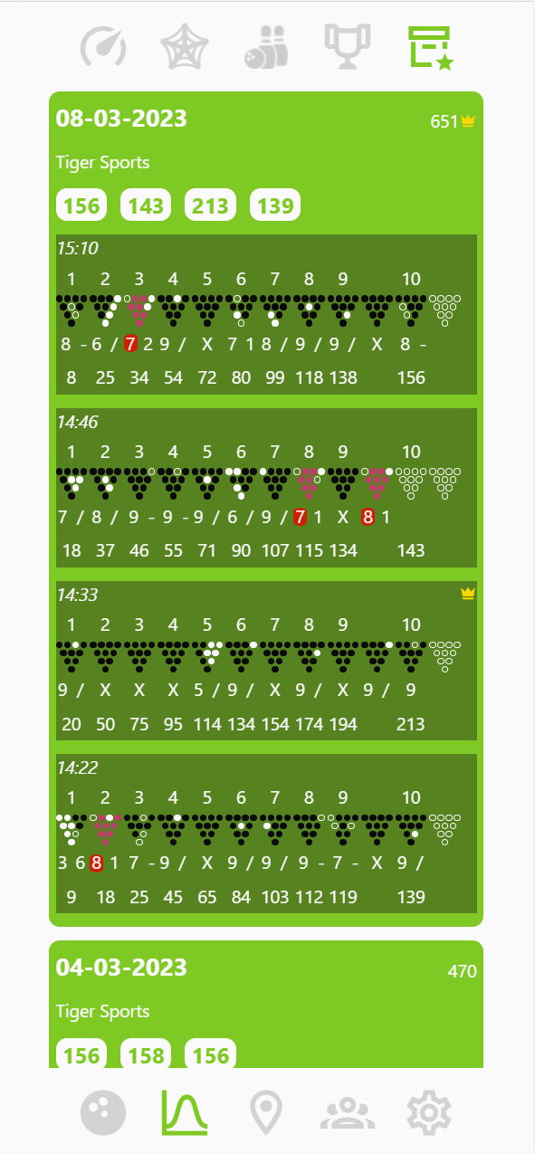 Bowling by Raketten will save all your games in an online database, so that you can study your improvements over time.