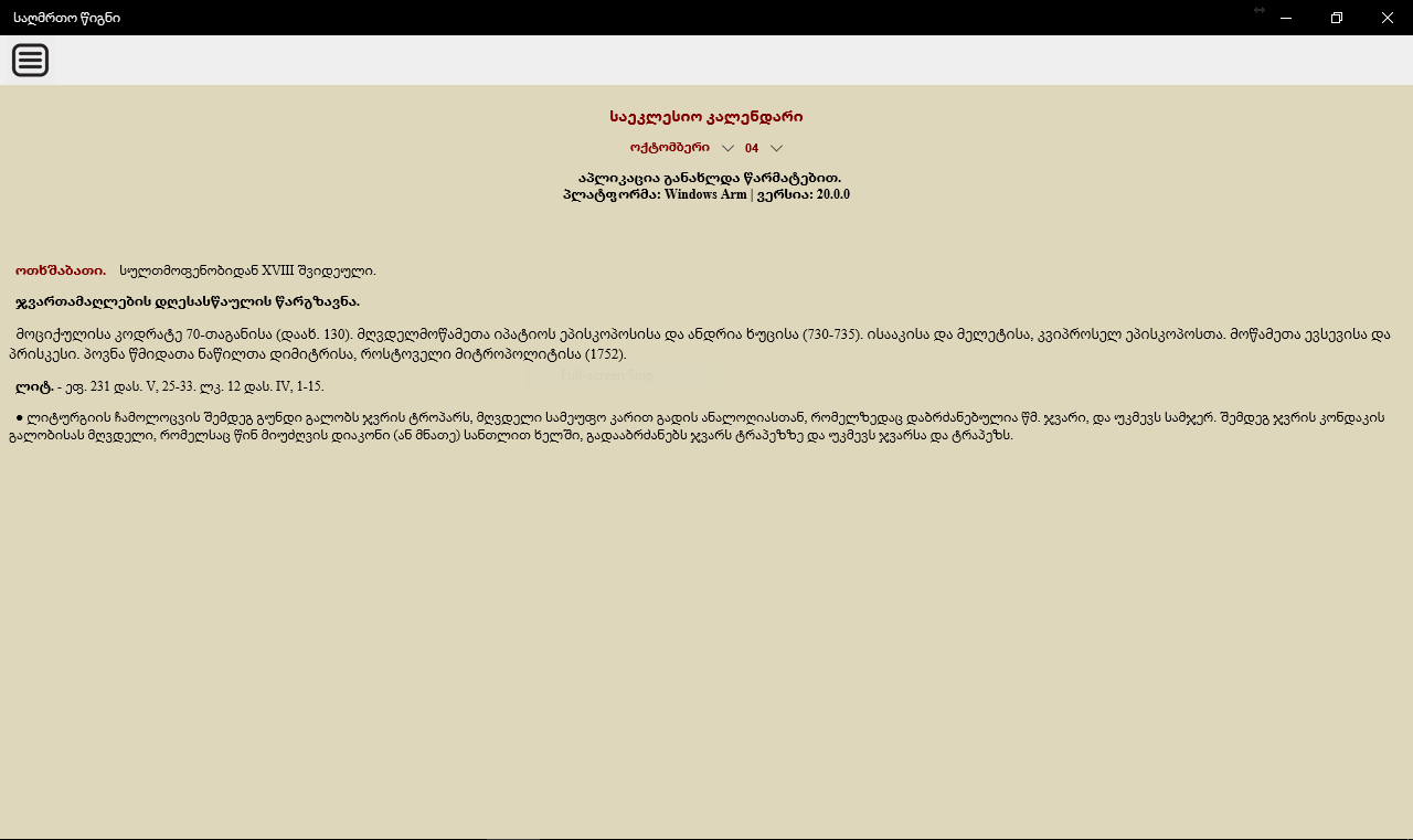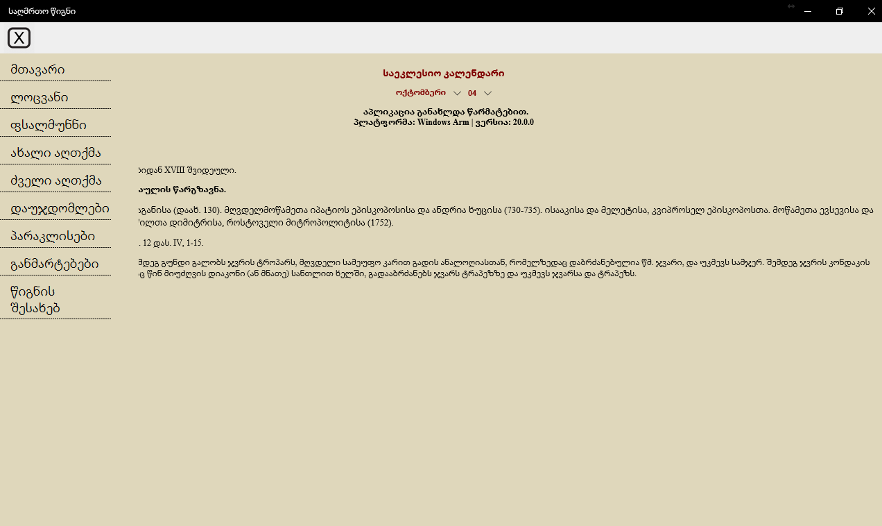● საეკლესიო კალენდარი.